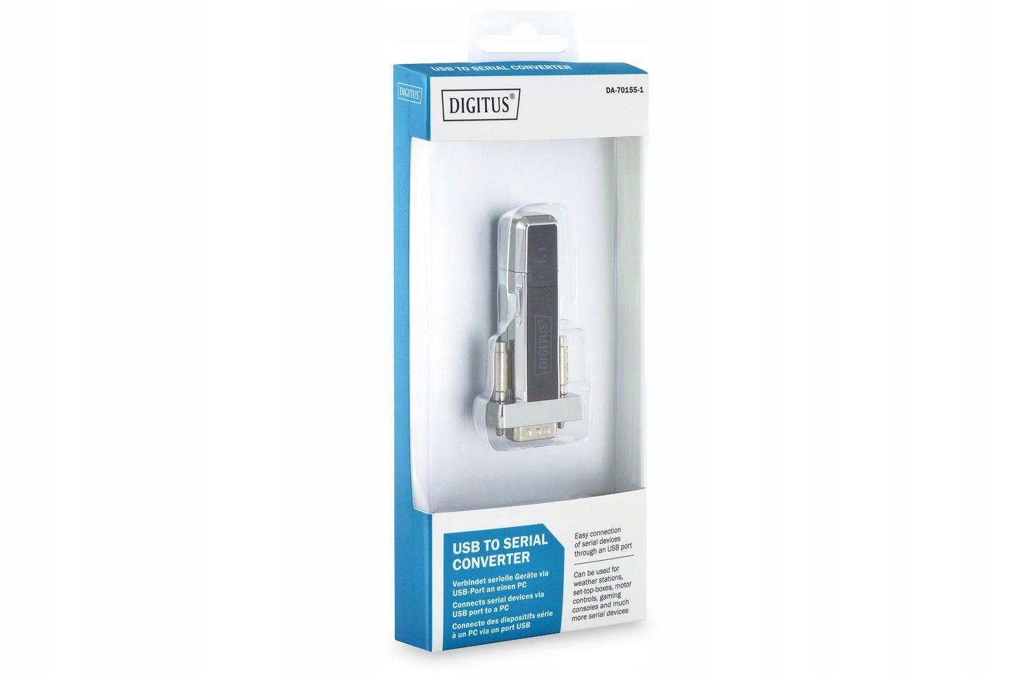 Адаптер DIGITUS USB to RS232 призначений для підключення послідовних пристроїв до комп’ютера через USB порт. Він підтримує стандарт RS232 та забезпечує швидкість передачі даних понад 1 Мбіт/с. Пристрій підходить для роботи з метеостанціями, контролерами, консолями та іншими серійними пристроями. Сумісність з популярними операційними системами спрощує інтеграцію. Компактний формат зручний для повсякденного використання.