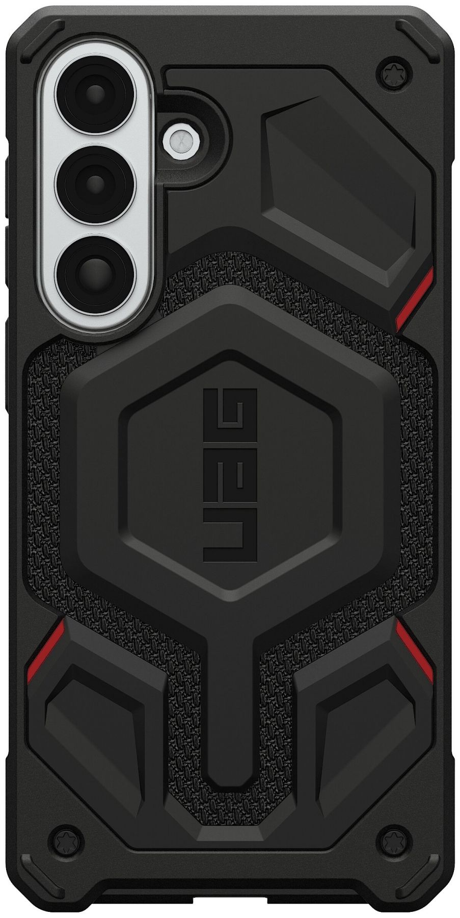 Чохол UAG Monarch Pro with Magnet для Samsung Galaxy S26+ (Kevlar Black) — це 5-шаровий преміальний захист від Urban Armor Gear з вбудованим магнітним кільцем для MagSafe-зарядки. Ударопоглинаюча композитна конструкція з м'якими амортизуючими краями, арамідним волокном Kevlar та посиленою металевою фурнітурою забезпечує надійний захист від падінь і ударів. Збільшені кнопки, точні вирізи для портів і камер, відсутність відблисків на фото та спотворень звуку роблять чохол максимально зручним.