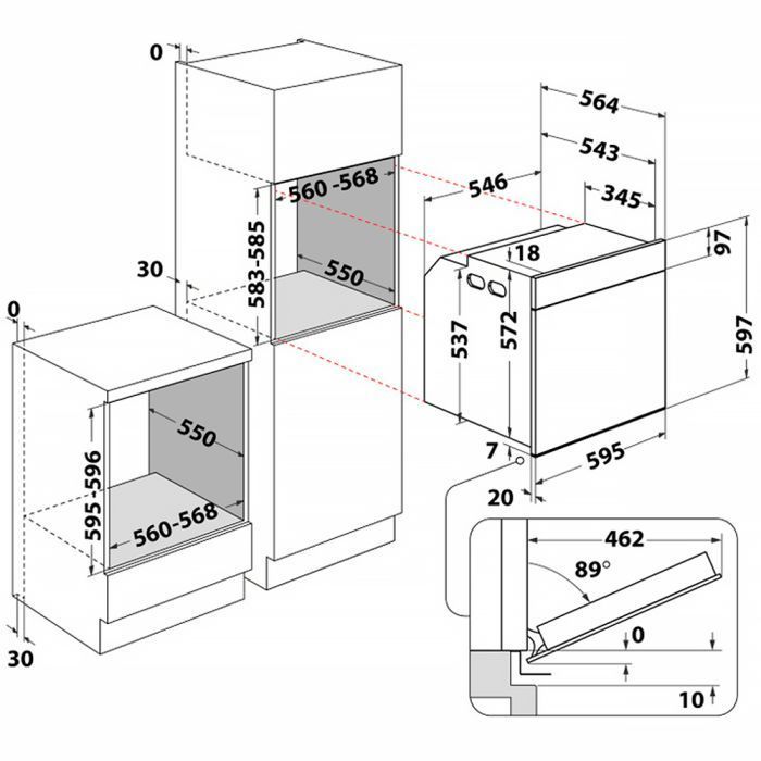 Розміри для вбудовування ( ВхШхГ ):58,3-58,5 x 55,8-56,8 x 55, 583–585×560–568×550