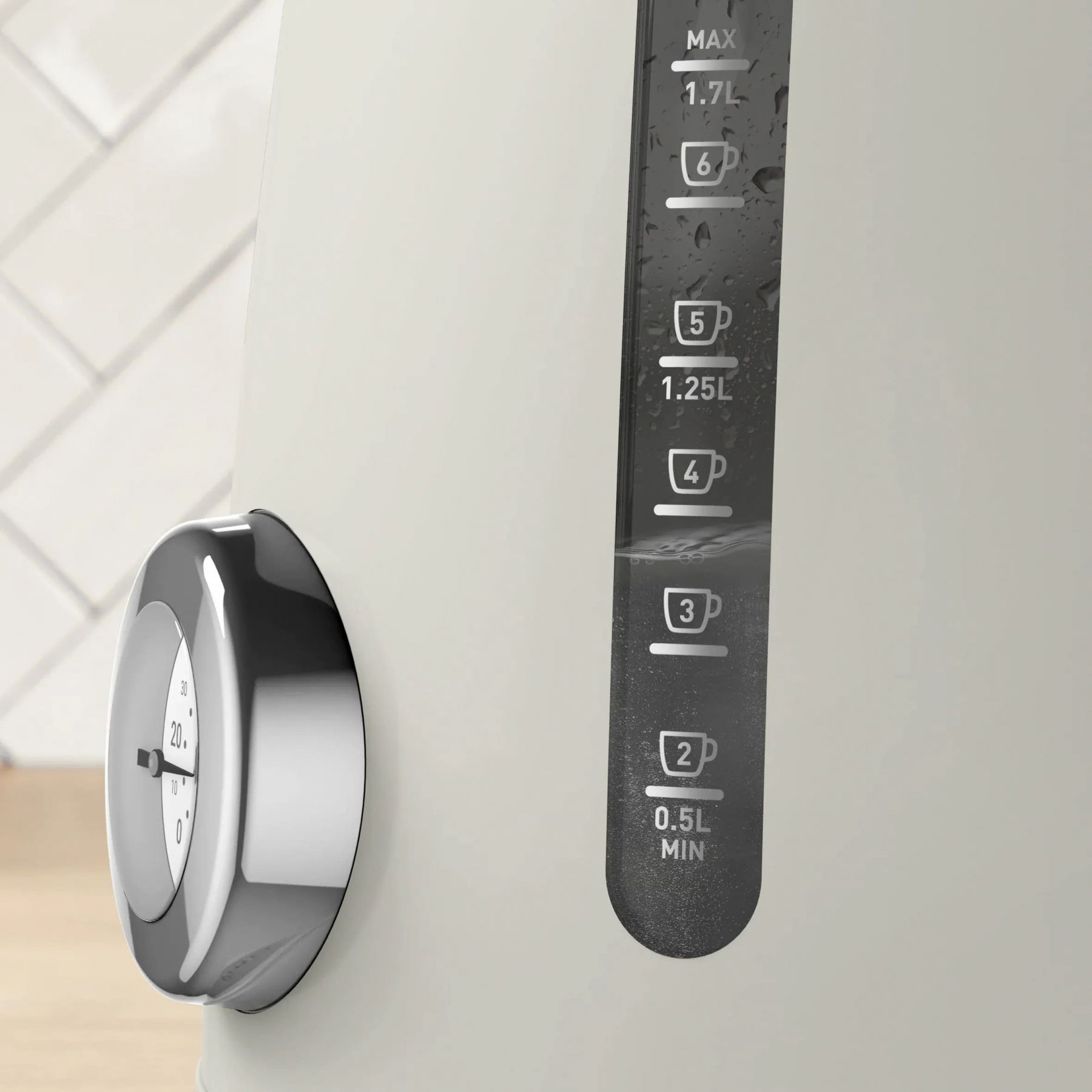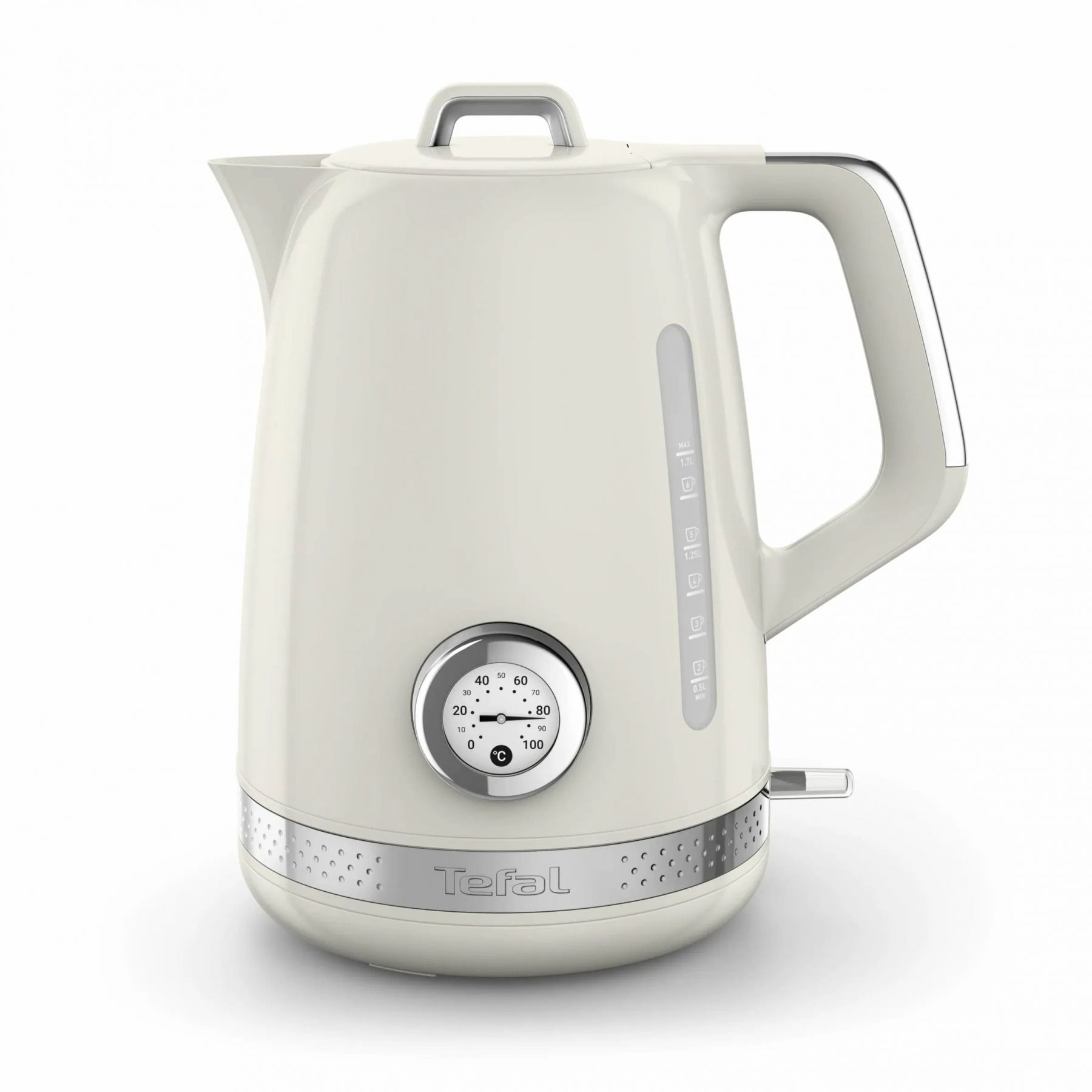 Електрочайник Tefal Soleil+ поєднує сучасну функціональність із ретро-дизайном у бежевому кольорі. Об’єм 1.7 л дозволяє кип’ятити воду для кількох чашок напоїв за один цикл. Модель оснащена вбудованим термометром для контролю температури води та надійним термостатом Strix для безпечної роботи. Відкидна кришка й індикатор рівня води спрощують наповнення та контроль об’єму. Знімний фільтр від накипу допомагає підтримувати чистоту води під час щоденного використання.