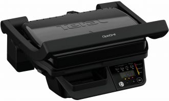 Tefal OptiGrill GC7P0810 — прижимний електрогриль 2000 Вт із нержавіючим корпусом та знімними антипригарними пластинами розміром 30х20 см. Автоматично визначає товщину й кількість шматків і підбирає час приготування для точного результату від rare до well-done. Є цифровий екран зі зворотним відліком, 3 автоматичні програми та ручне регулювання температури 120–270 °C. Знімні антипригарні пластини й піддон для жиру придатні для миття в посудомийній машині.