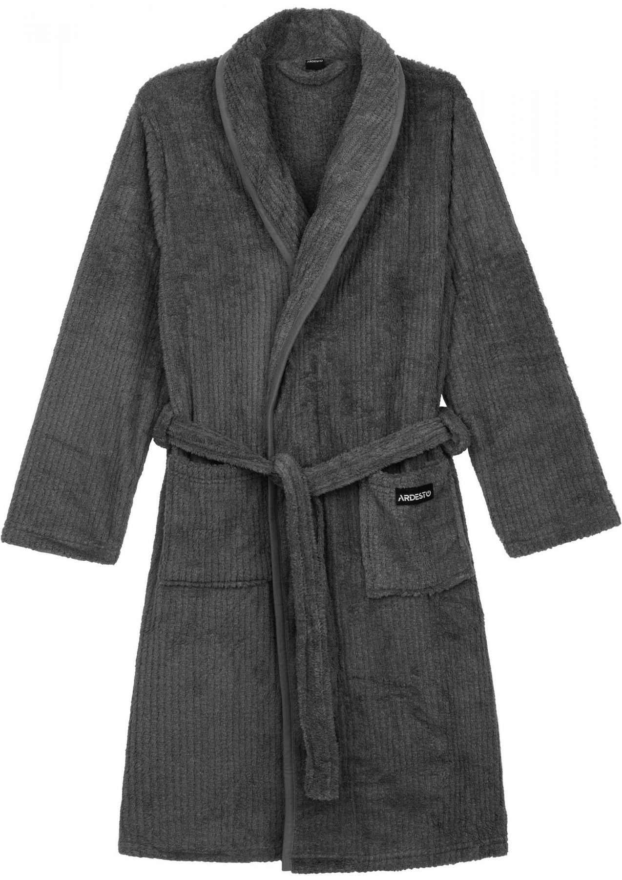 Чоловічий халат ARDESTO Stripe темно-сірого кольору – практичний вибір з акцентом на комфорт. Довжина виробу становить 116 см, розмір – XL/XXL. Модель виготовлено зі 100 % поліестеру, що зумовлює зносостійкість і простий догляд. Матеріал добре зберігає форму та швидко висихає за умови дотримання рекомендацій щодо догляду: делікатне прання за температури до 40 °C без машинного віджимання і сушіння, за потреби допустимо застосовувати відбілювач без хлору, не потребує прасування.