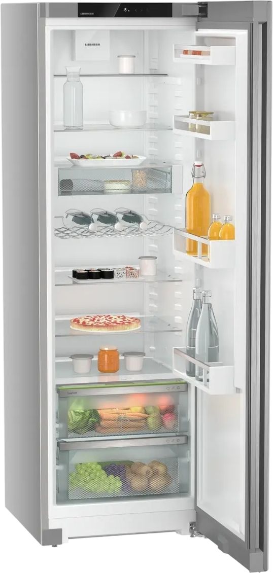 Liebherr SRsfd 5220 Plus — окремостоячий однокамерний холодильник з об’ємом 398 л і енергоефективністю A++. Оснащений сенсорним керуванням, динамічною системою охолодження, функціями EasyFresh і SuperCool для збереження свіжості продуктів, а також LED-освітленням та цифровим дисплеєм.