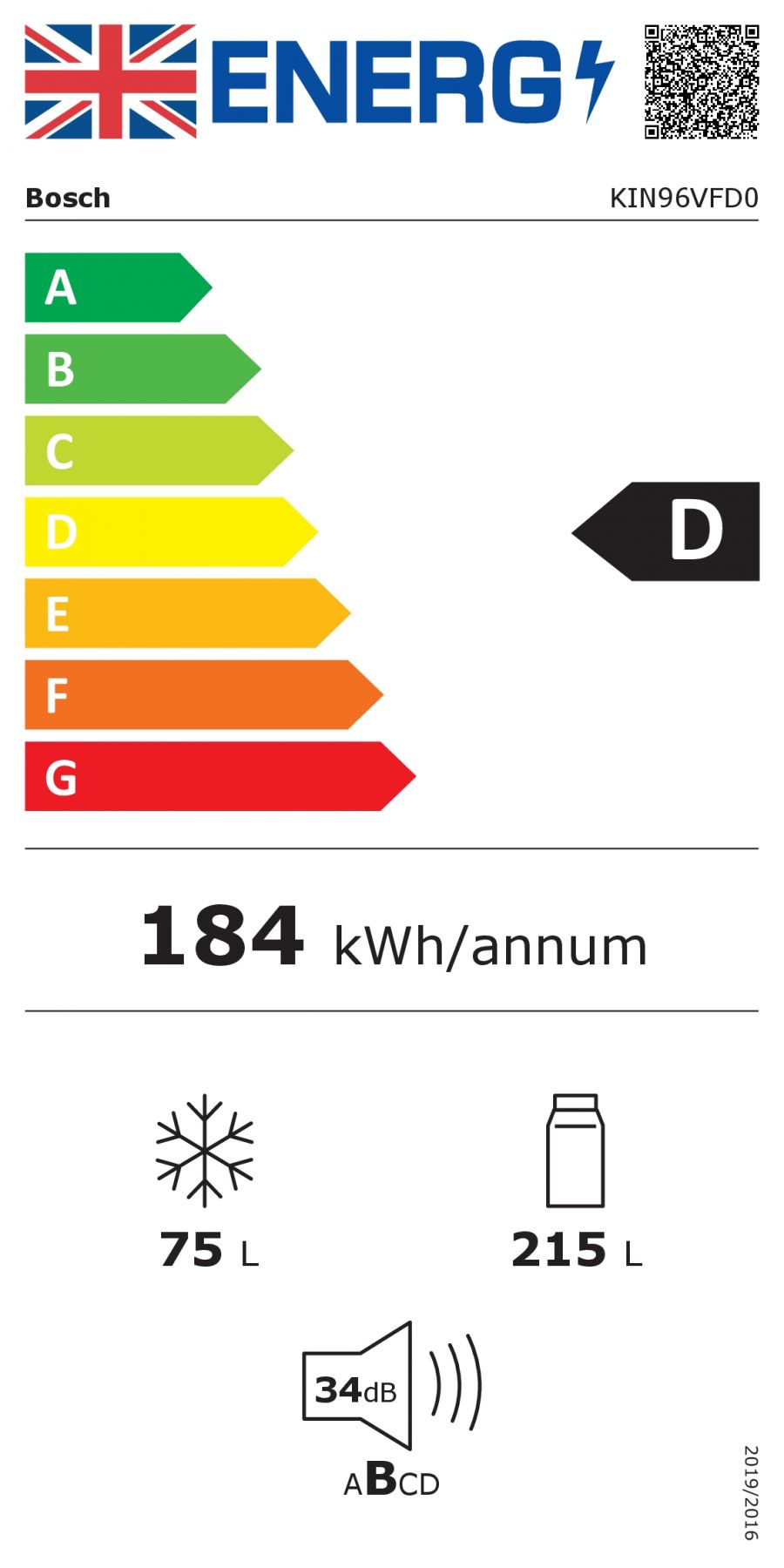 Споживання енергії:184 кВт/рік