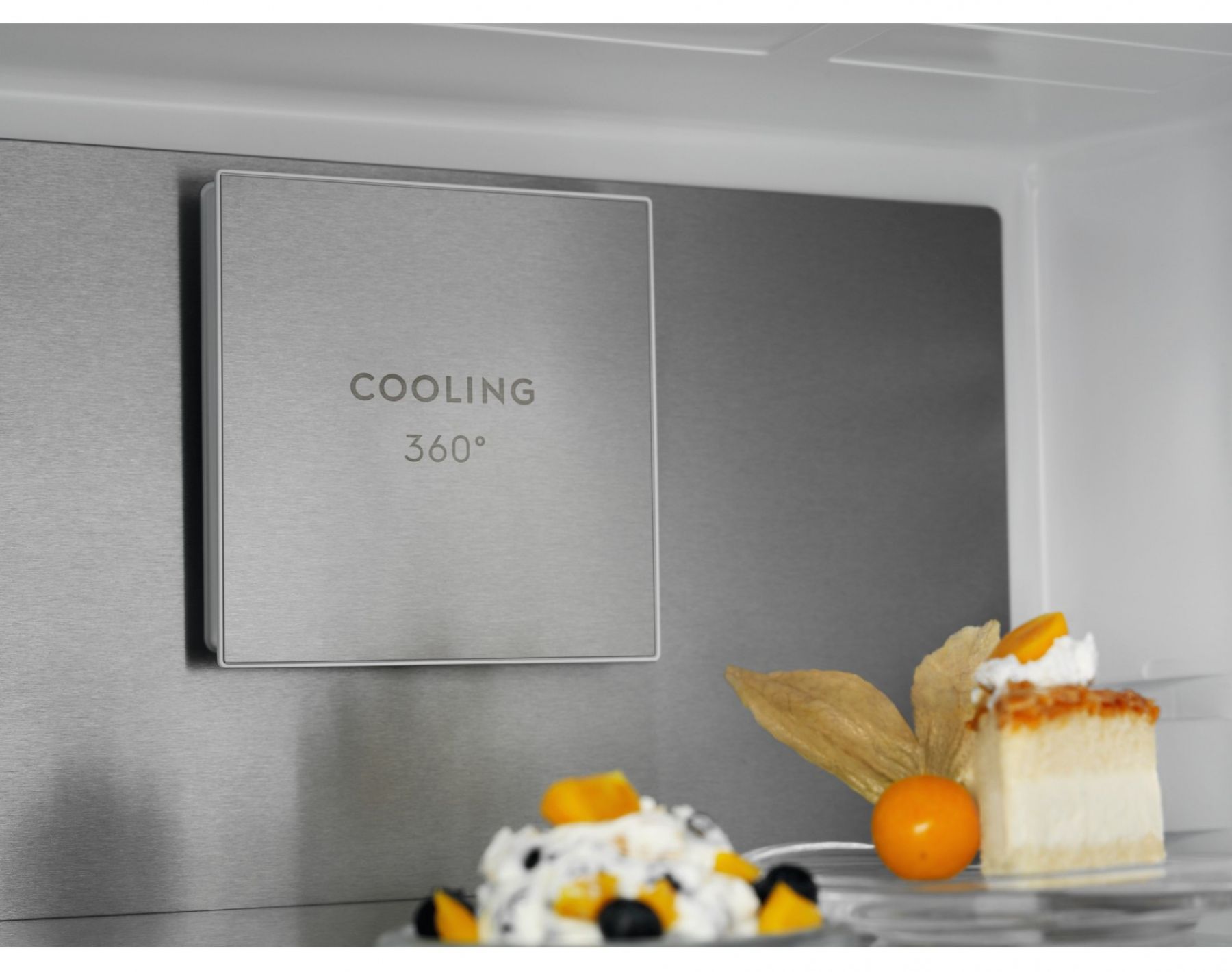 Холодильник Electrolux LNT7ME36K2 поєднує стильний дизайн із чорним склом та продумані технології збереження продуктів. Система Cooling 360° забезпечує рівномірний розподіл холодного повітря по всьому об’єму. Технологія TwinTech® No Frost підтримує оптимальний рівень вологості та запобігає утворенню льоду. Інверторний компресор працює стабільно та тихо. Висувна зона Extra Chill ідеально підходить для зберігання м’яса та сирів.