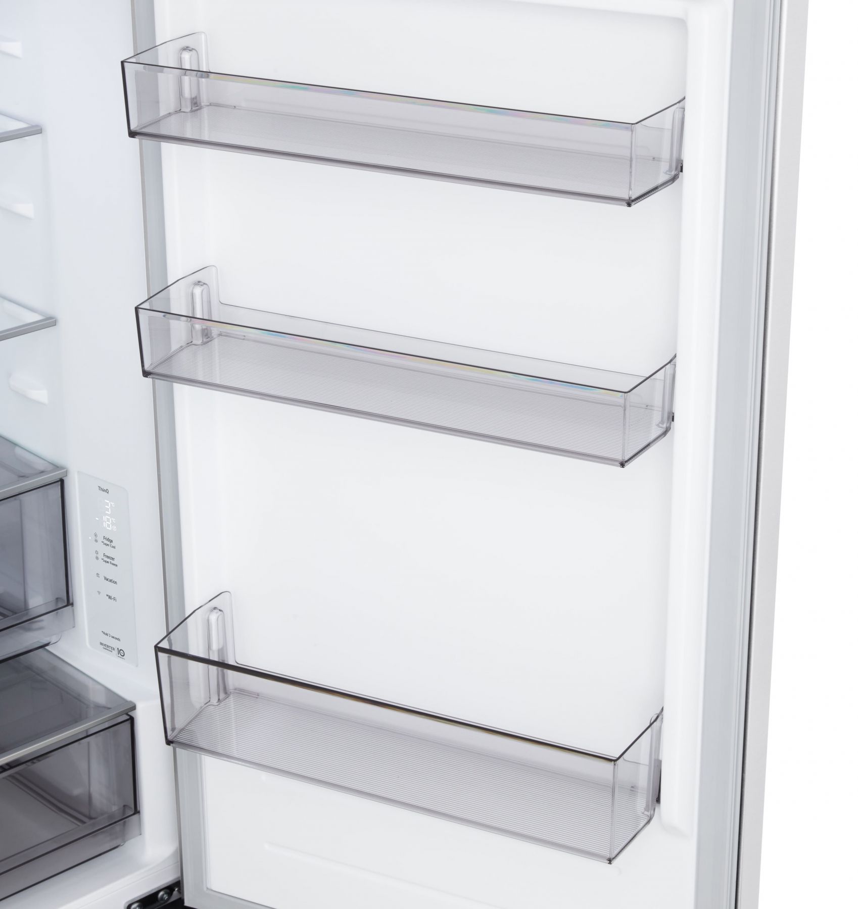 Функції / можливості:Експрес заморозка, LED освітлення, Експрес охолодження, Багатопотокова система охолодження Multi Air Flow, Антибактеріальний ущільнювач Bio Shield, DoorCooling+, Зона свіжості Fresh Zone, Сигнал відкритих дверцят, Технологія контролю напруги, LG ThinQ з керуванням через Wi-Fi, Інтелектуальна система діагностики Smart Diagnosis, Багатопотокова система охолодження морозильного відділення