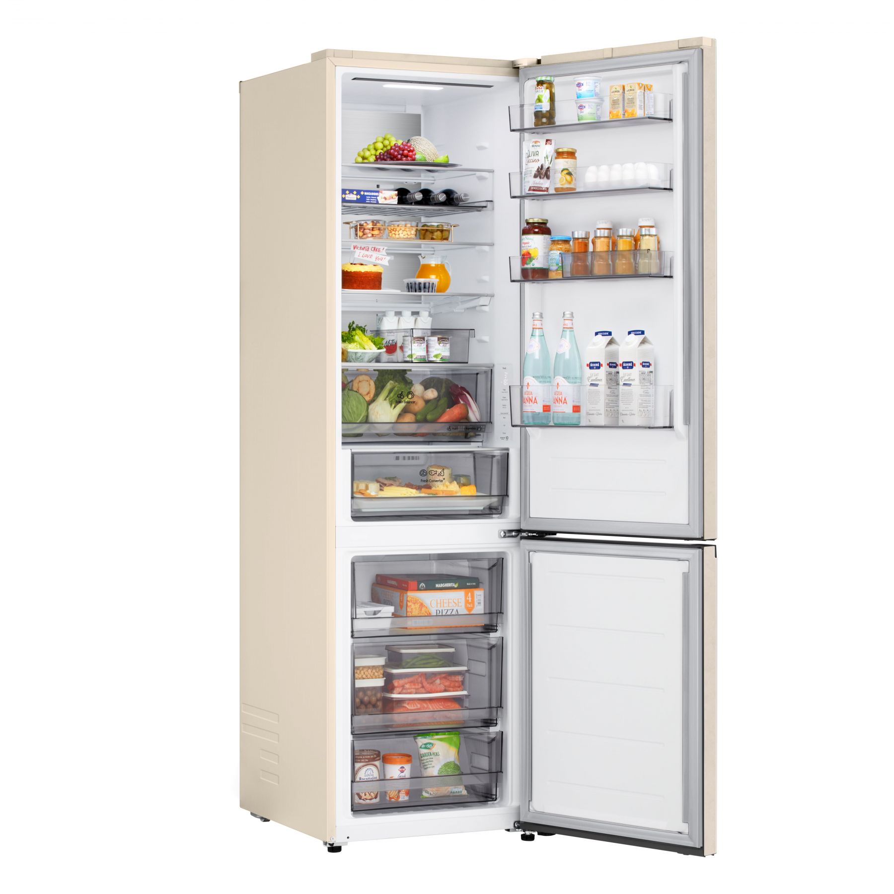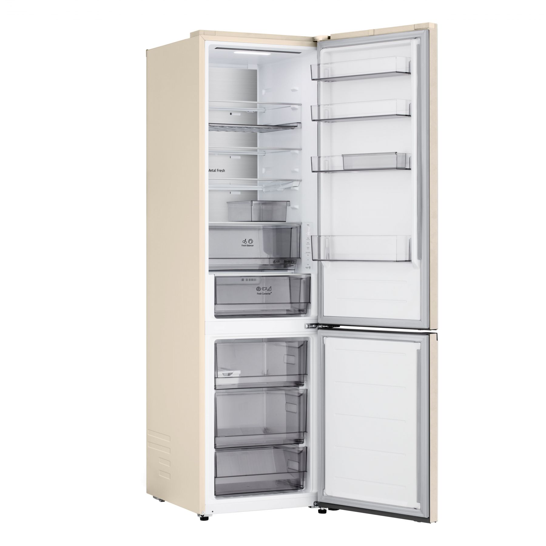 Холодильник LG з нижн. мороз., 203x60х68, холод.відд.-262л, мороз.відд.-113л, 2дв., E, NF, інв., диспл внутр., Fresh Сonverter, Metal Fresh, бежевий
