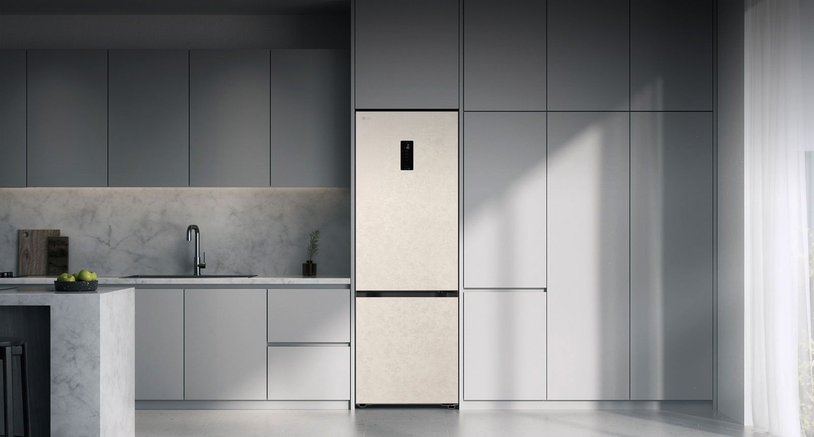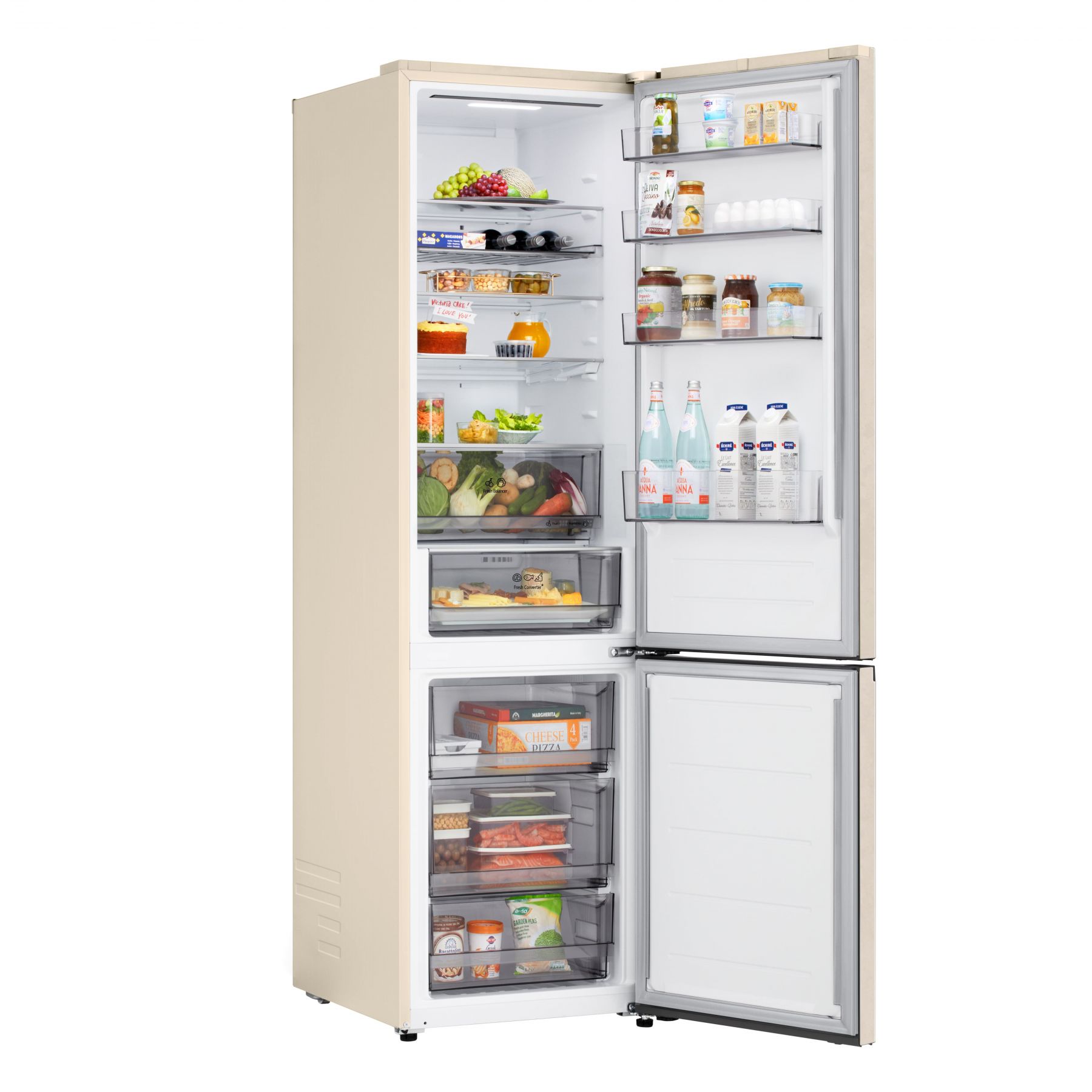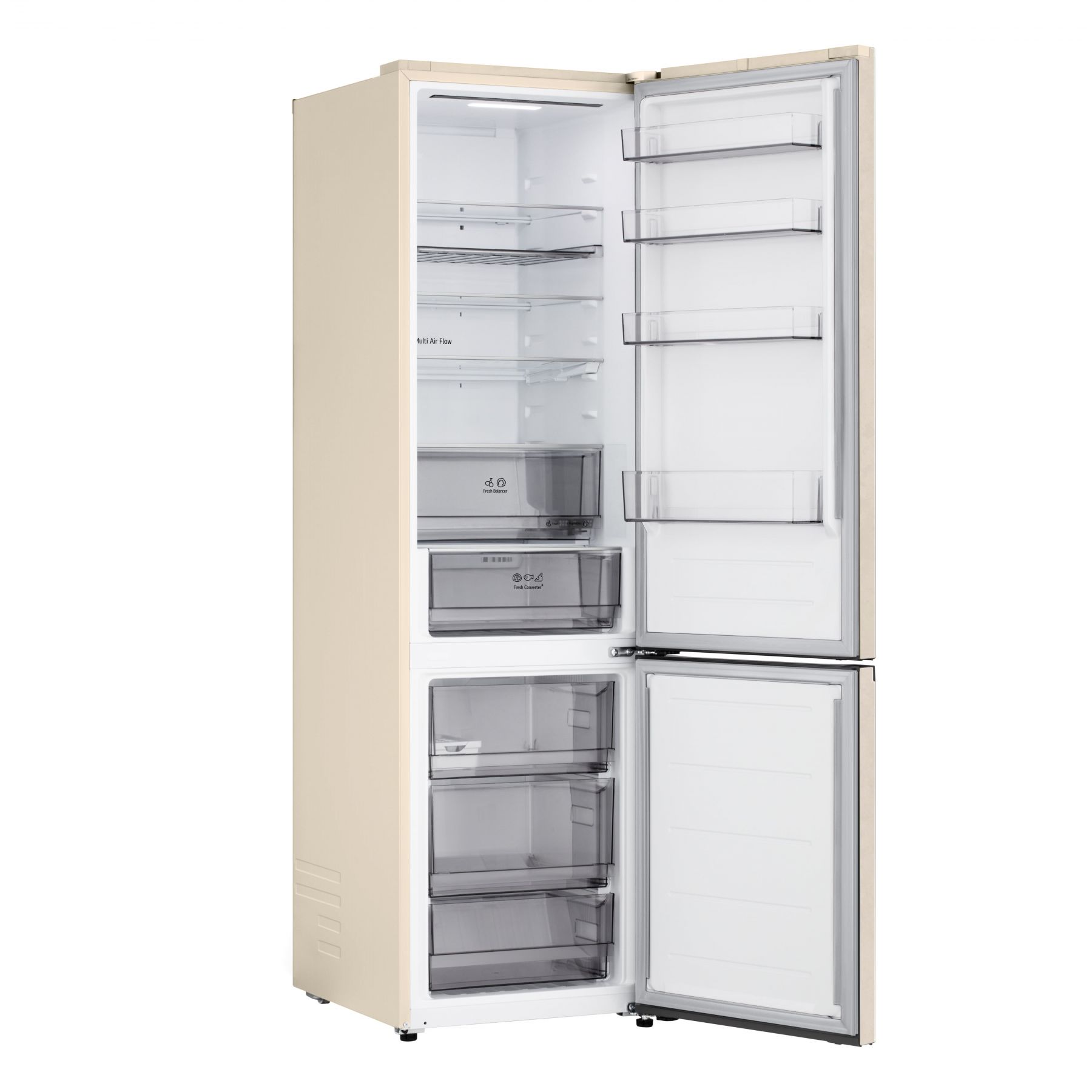 Холодильник LG з нижн. мороз., 203x60х68, холод.відд.-262л, мороз.відд.-113л, 2дв., E, NF, інв., диспл зовн., Fresh Сonverter, бежевий