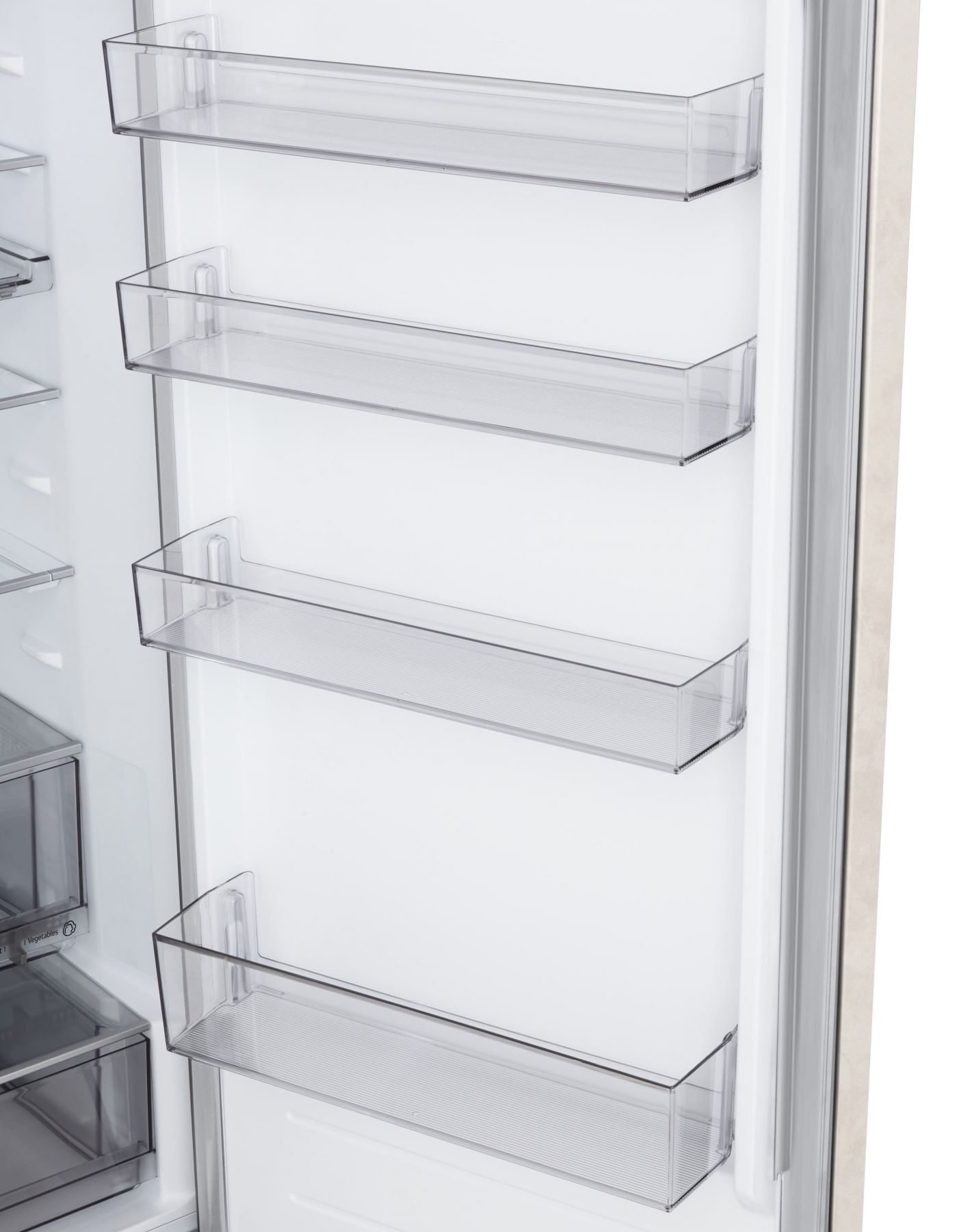 Додатково:Перенавішування дверцят, нульовий зазор, лоток для заморожування льоду, винна полиця, складана полиця, прозорі дверні кошики, висувні контейнери