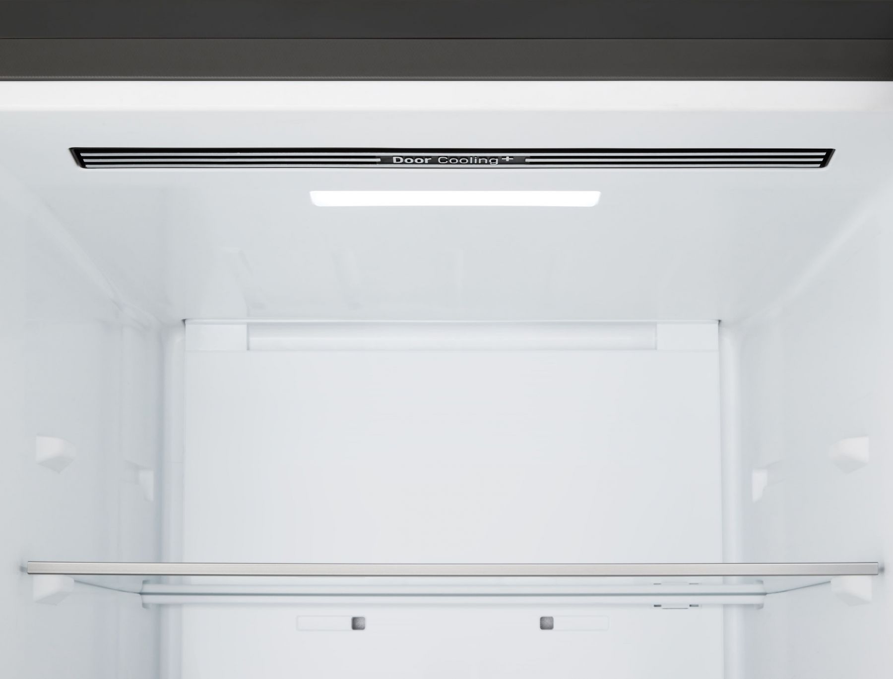 Холодильник LG GC-B509ETTM з нижньою морозильною камерою має загальний корисний об'єм 375 л (262 л холодильне відділення + 113 л морозильне). Пристрій оснащений інверторним компресором, системою Total No Frost, технологією DoorCooling+ та зовнішнім LED-дисплеєм. Зони Fresh Balancer і Fresh Converter дозволяють точно регулювати вологість і температуру для різних продуктів. Річне споживання енергії становить 263 кВт·год (клас E), рівень шуму - 35 дБ. Гарантія - 1 рік повна + 10 років на компресор.