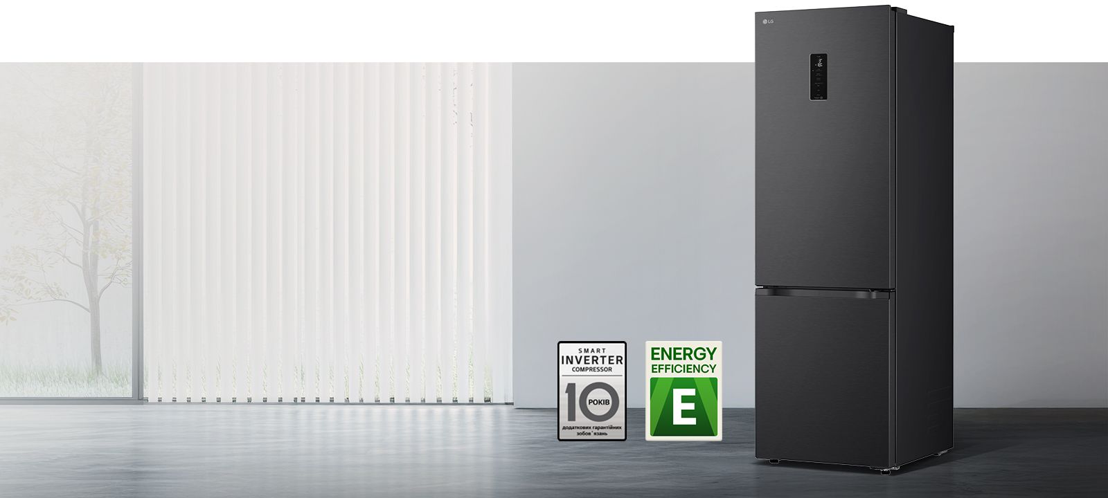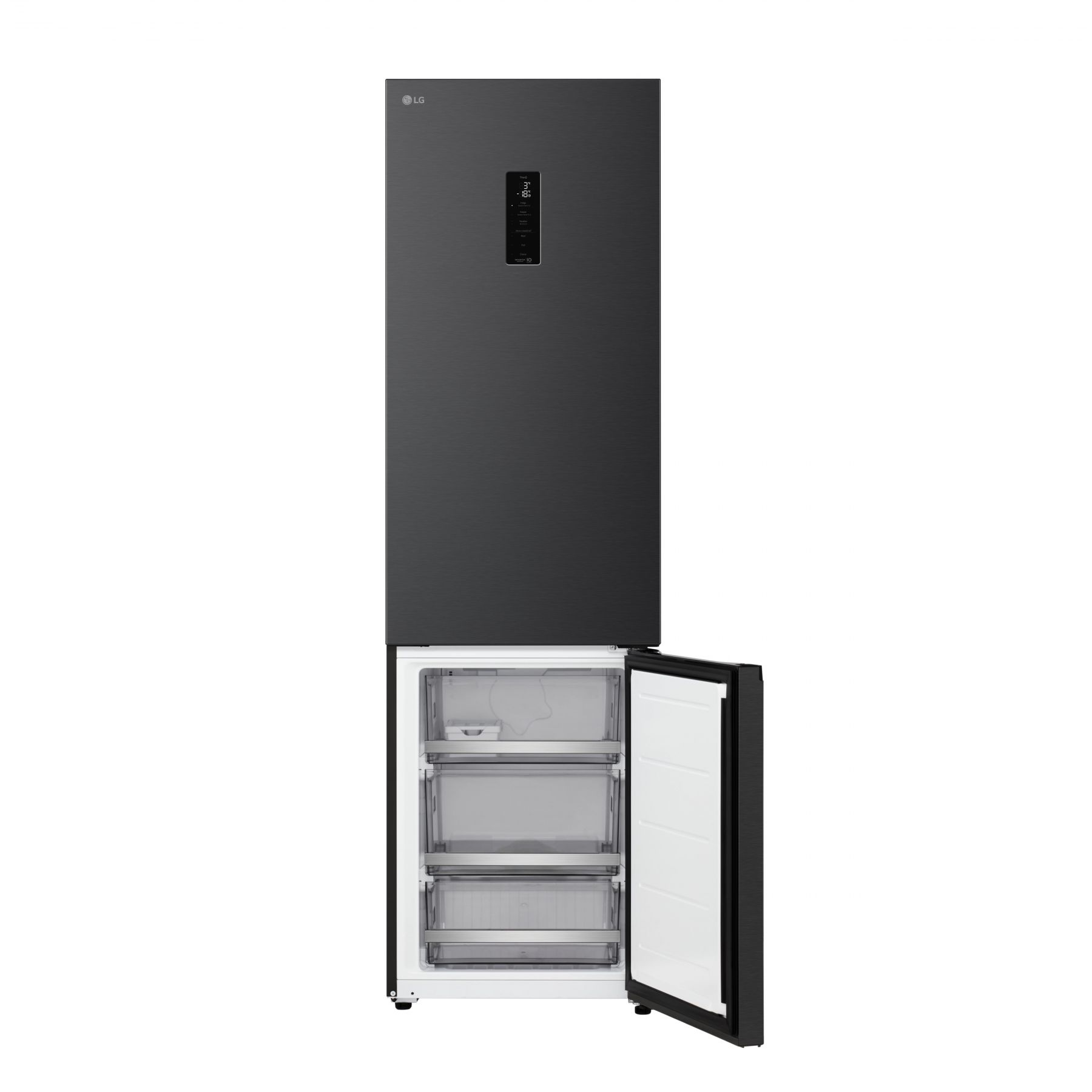 Холодильник LG з нижн. мороз., 203x60х68, холод.відд.-262л, мороз.відд.-113л, 2дв., E, NF, інв., диспл зовн., Fresh Сonverter, Metal Fresh, чорний