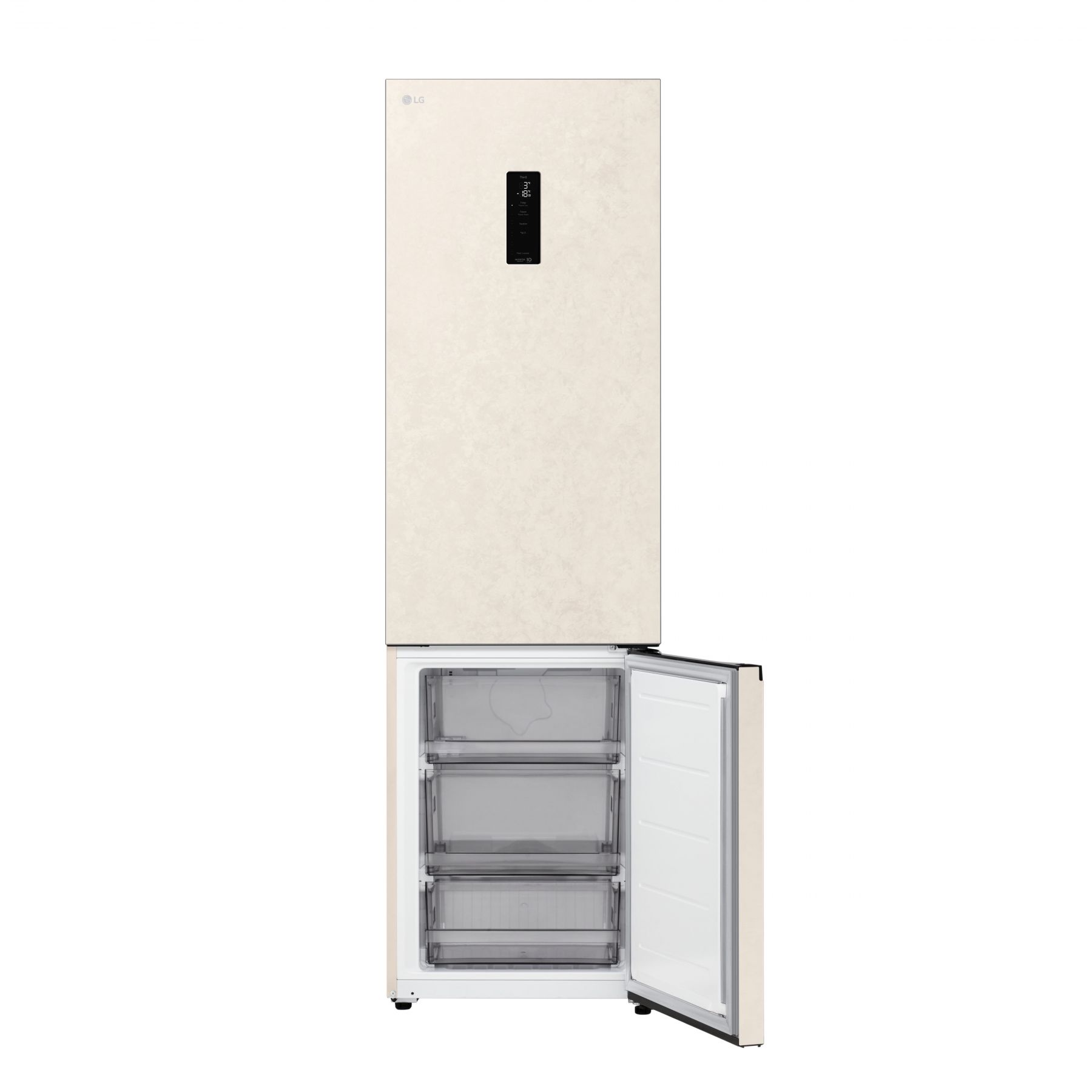 Холодильник LG з нижн. мороз., 203x60х68, холод.відд.-262л, мороз.відд.-113л, 2дв., E, NF, інв., диспл зовн., зона св-ті, бежевий