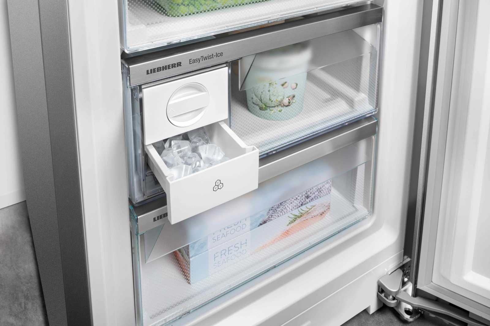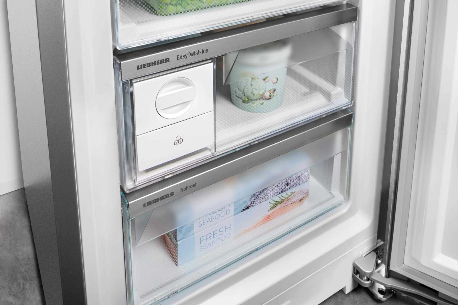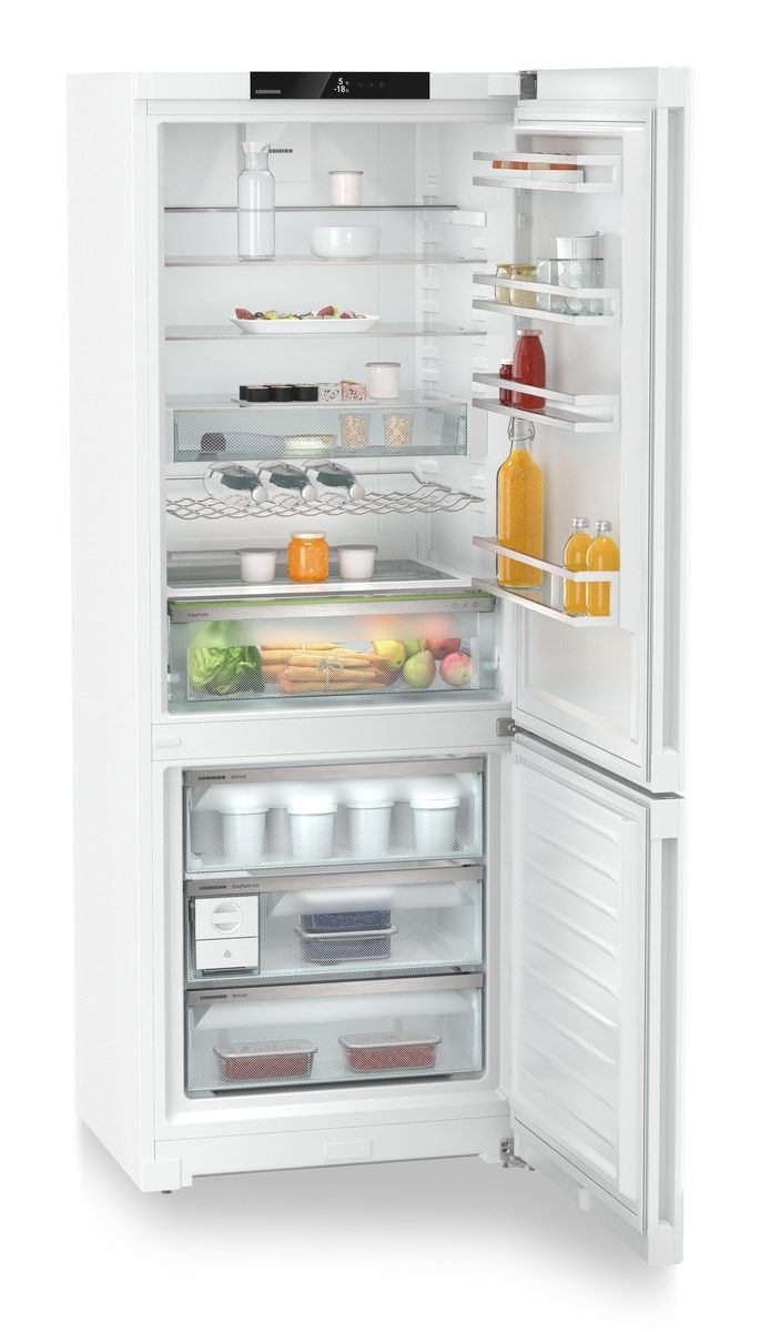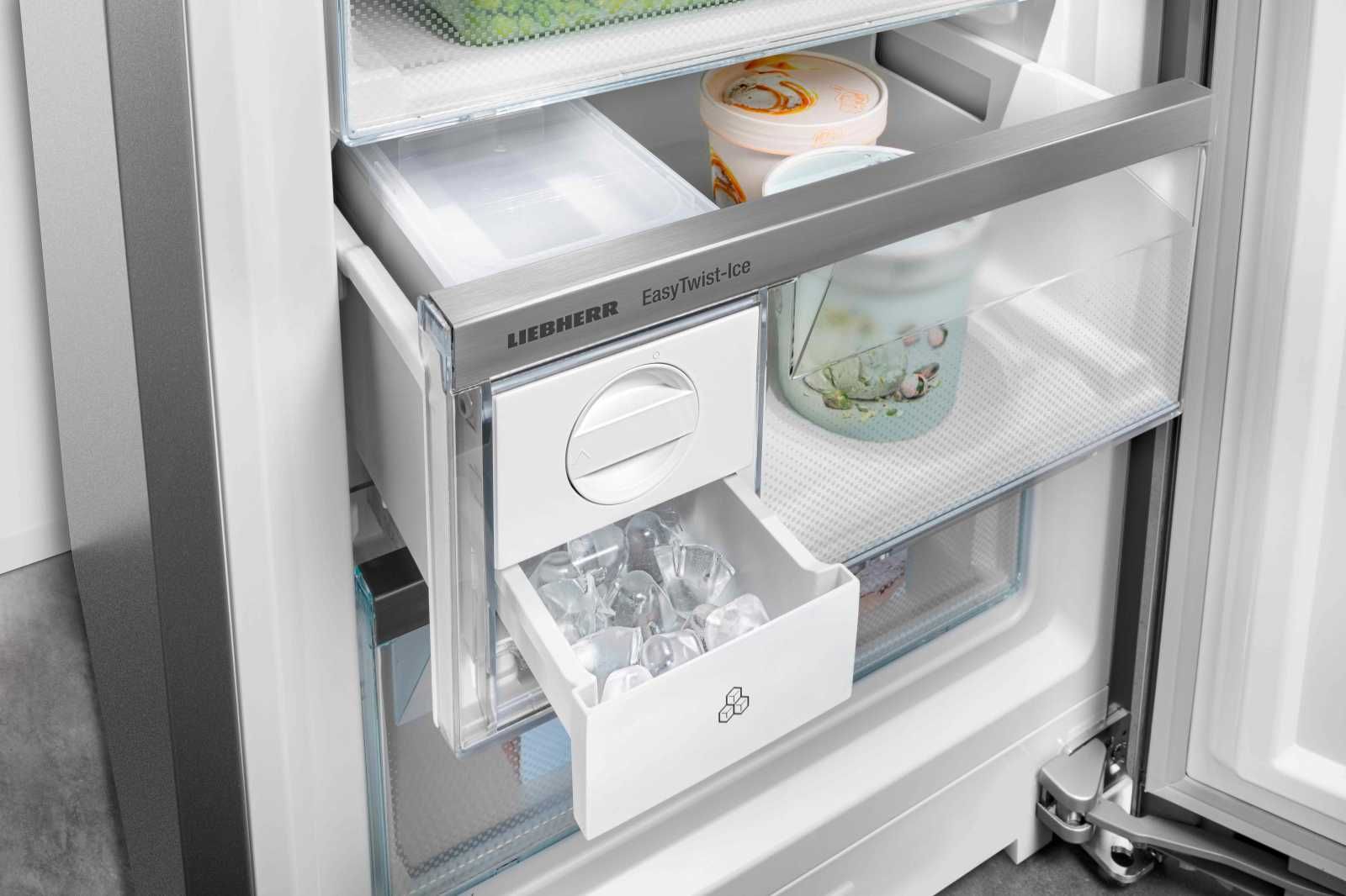 Liebherr CND7723 — це сучасний двокамерний холодильник з системою NoFrost, яка запобігає утворенню льоду та інею. Технологія DuoCooling передбачає використання двох окремих контурів, тому повітря з холодильної та морозильної камер не змішується. Завдяки системі PowerCooling, потужний і водночас тихий вентилятор розподіляє холодне повітря по всьому холодильнику. За допомогою льодогенератору EasyTwist-Ice ви можете легко й швидко приготувати кубики льоду без підключення до водопроводу. У холодильнику Liebherr є відділення VarioSafe. Це відділення з можливістю регулювання за висотою, завдяки якому ви зможете впорядкувати свої продукти. Відділення EasyFresh довго зберігатиме свіжість ваших продуктів. Тут забезпечуються оптимальні умови зберігання для незапакованих овочів і фруктів.