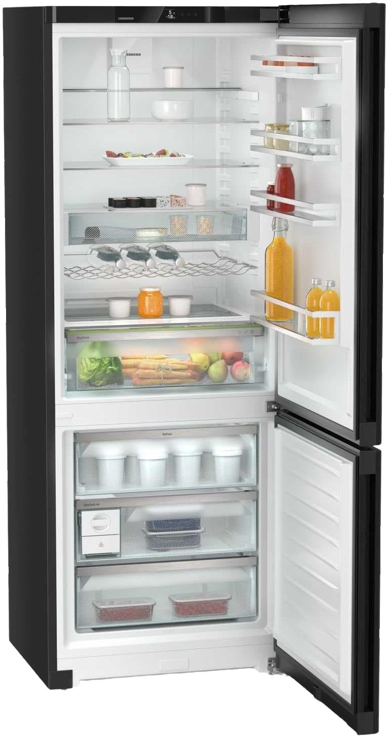 Холодильник Liebherr з нижн. мороз., 201.5x74.7х67.5, холод.відд.-346л, мороз.відд.-128л, 2дв., A++, NF, диспл внутр., чорний