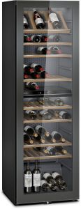 Окремовстановлювана винна шафа Siemens KW36KATGA створена для стабільного зберігання великої колекції вина. Дві температурні зони підтримують діапазон від 7 °C до 19 °C, що дозволяє розділяти різні типи напоїв. Об’єм 370 літрів вміщує до 199 пляшок. Інтегрований вентилятор забезпечує рівномірне охолодження, а низький рівень шуму 38 дБ не відволікає у житловому просторі. Чорний корпус із дизайном High Door формує стриманий сучасний вигляд.