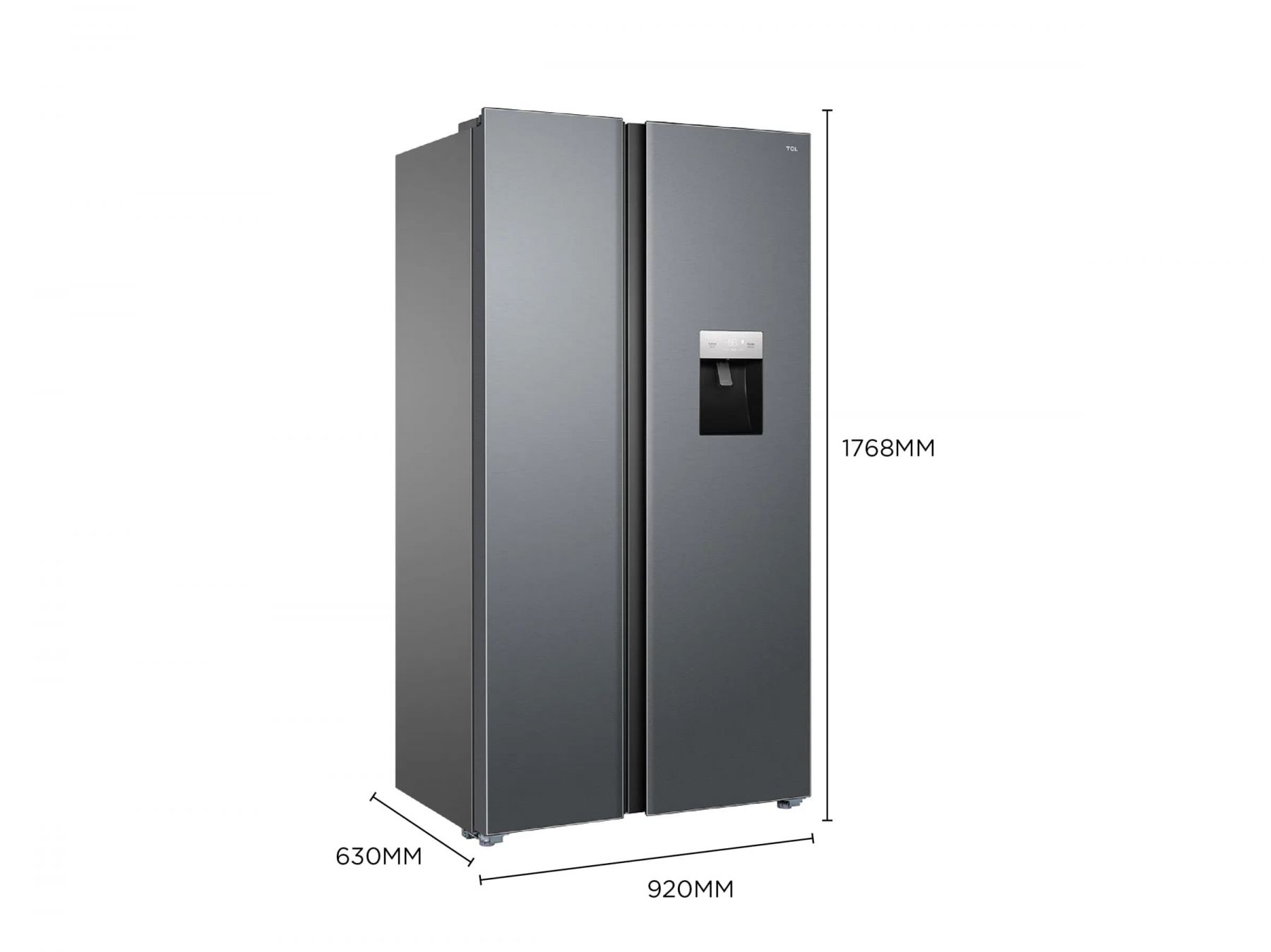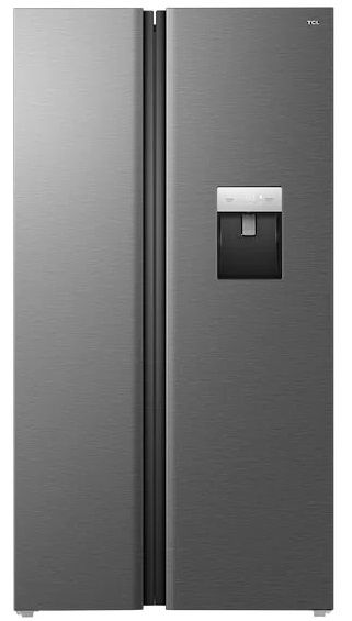 Холодильник TCL SBS, 177х92х63см, холод.відд.-322л, мороз.відд.-156л, 2дв., A++, NF, інв., диспл зовн., зона св-ті, диспенсер, нерж