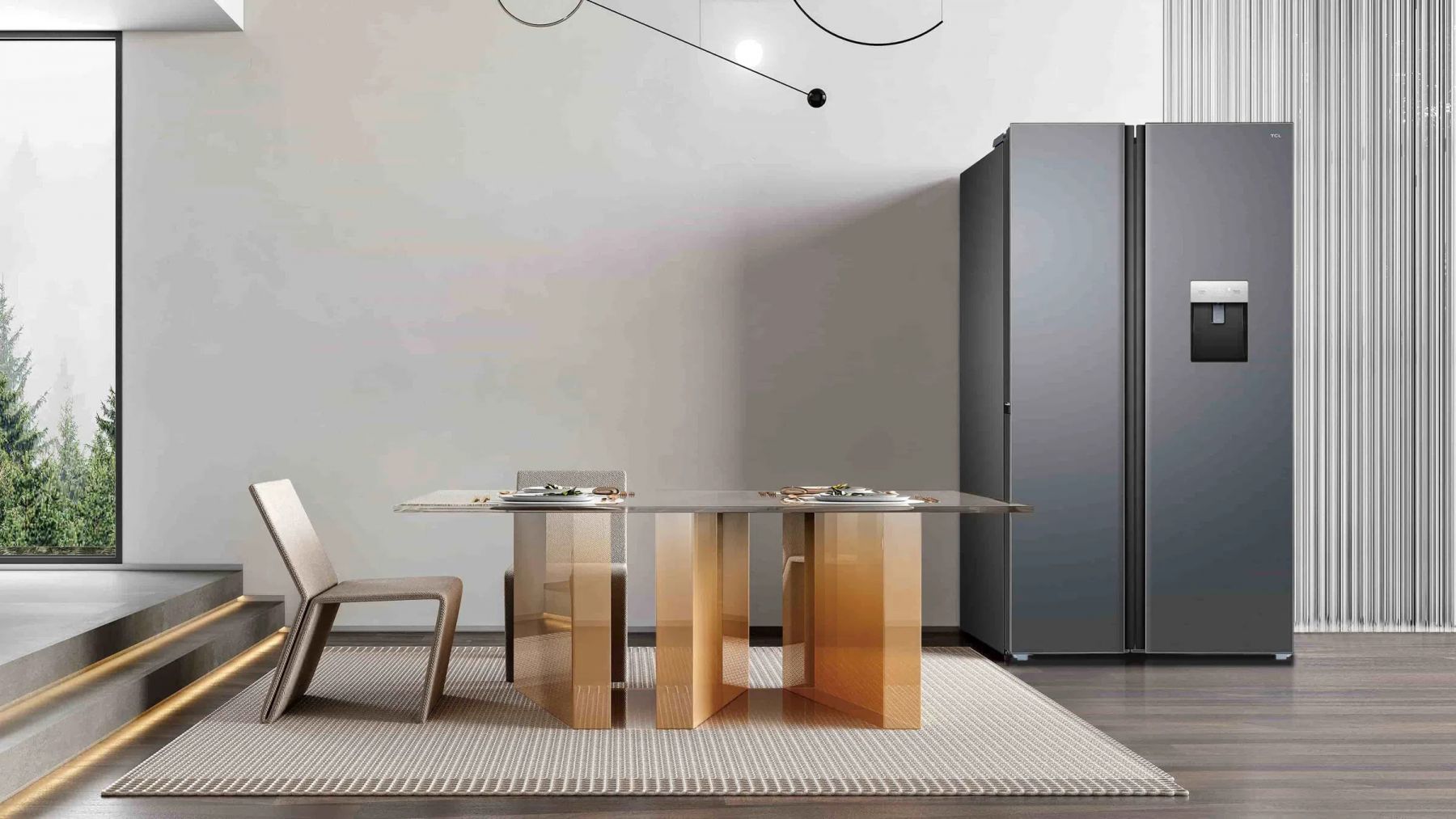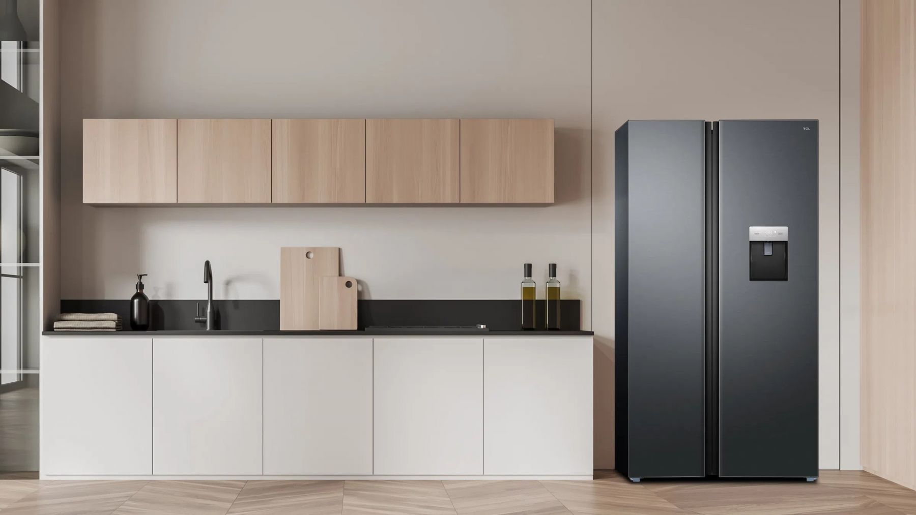 Цей холодильник пропонує енергоефективність, тишу роботи та точне управління температурою завдяки інверторному компресору TCL. Завдяки технології No Frost та мультипотоковому охолодженню, продукти залишаються свіжими довше, а відтаювання більше не буде проблемою. Антибактеріальне покриття AAT гарантує гігієнічність, а диспенсер для води дозволяє насолоджуватися холодною водою без необхідності відкривати двері.