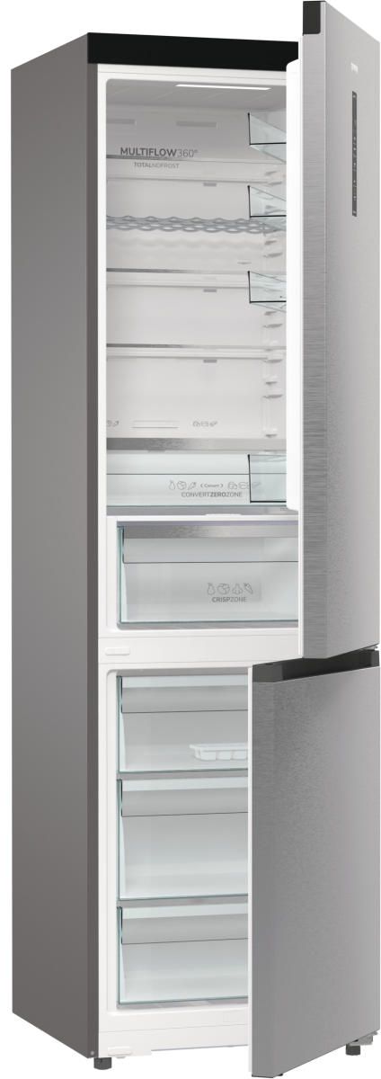 Холодильник з нижн. мороз. камерою Gorenje, 203х66х60см, 2 двері, 283(130)л, А+, Total NF, Зона св-ті, Інвертор, Зовн. Дисп, Wi-Fi, нерж