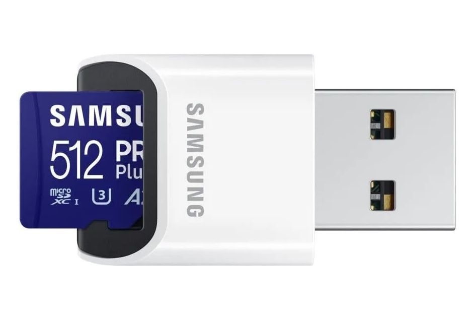 Карта пам'яті Samsung PRO Plus microSDXC об’ємом 512 ГБ забезпечує швидкість читання до 180 МБ/с та запис до 130 МБ/с з класами Class 10, U3, V30, A2 для стабільного запису 4K-відео та роботи додатків. У комплекті USB-адаптер (рідер) для підключення до портів USB-A на комп’ютерах та інших пристроях. Карта має багатошаровий захист від екстремальних умов та компактні розміри для використання в смартфонах, дронах, екшн-камерах.