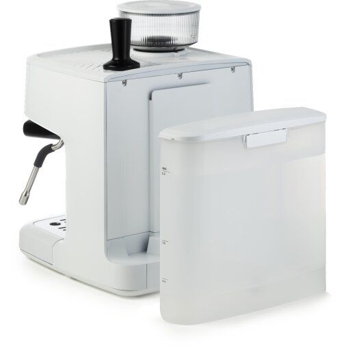 Кавоварка Gorenje GSACM20W — ріжкова модель з вбудованою кавомолкою (0,25 л), резервуаром води 2,5 л, тиском 20 бар, капучинатором та кнопочним керуванням. Підтримує каву в зернах, автоматичне дозування, приготування 2 чашок одночасно та молочну пінку. Білий пластиковий корпус, потужність 1550 Вт.