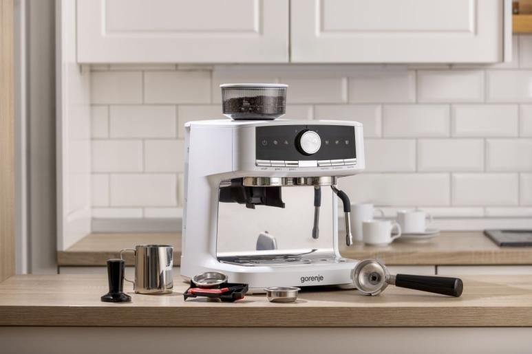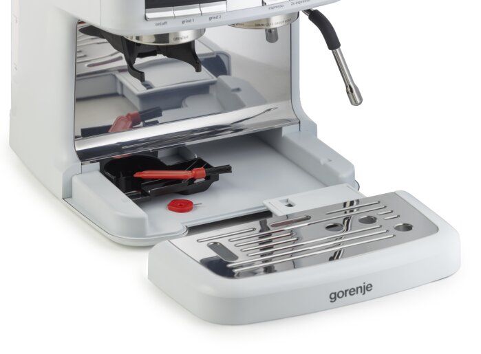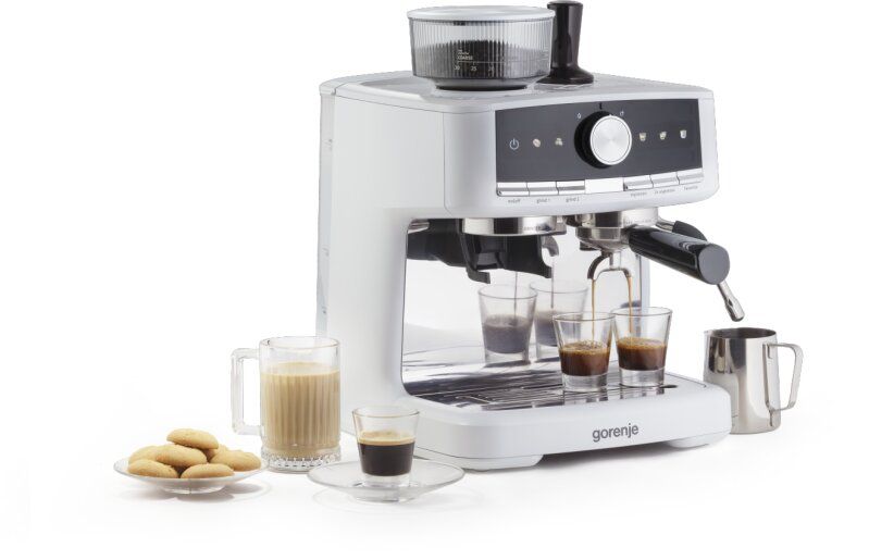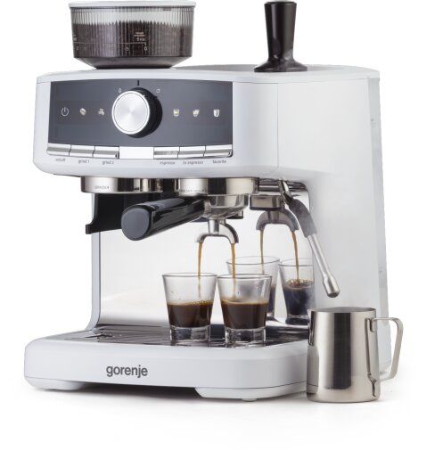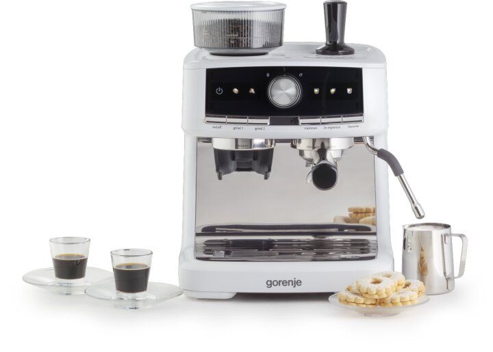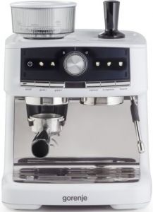 Кавоварка Gorenje ріжкова 2.5л, кавомолка 0,25л, капучинатор, кнопочне керування, білий