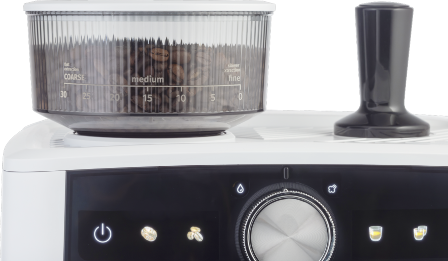 Функції:одночасне приготування двох чашок, молочна пінка, автоматичне регулювання кількості перемеленої кави, регулювання дозування кави