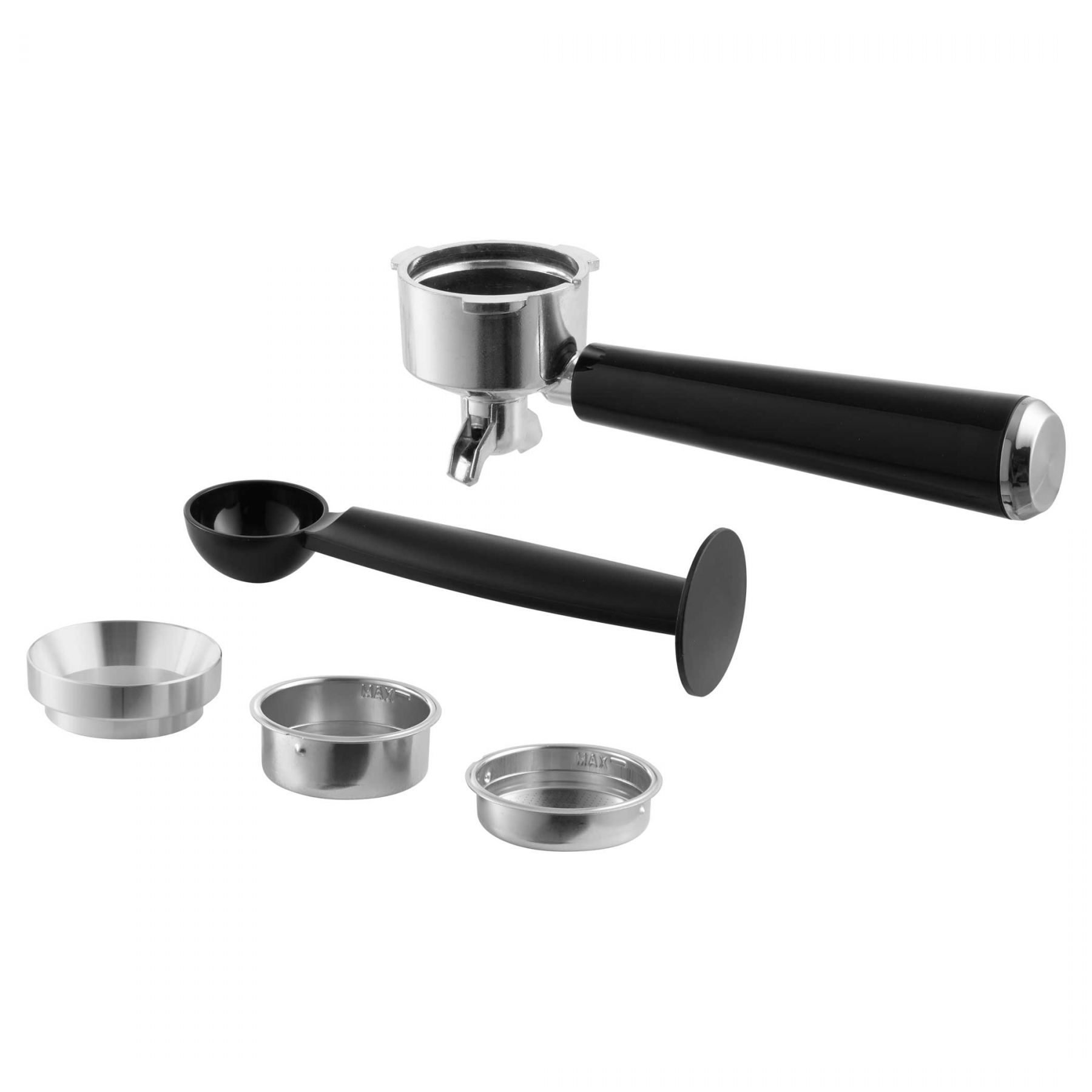 Комплектація:кавоварка, тримач для фільтра, 2 фільтри (для одинарної та подвійної кави), тампер з ложкою для кавоварки, бункер з важелем