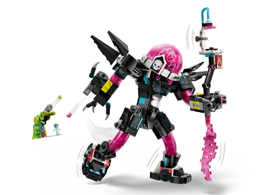 LEGO DREAMZzz 71495 «Матео проти робота Кібермозку» — захопливий набір для дітей від 8 років з 368 деталями, що пропонує дві конструкторські пригоди: перетворити різнобарвну капсулу на робота Кібермозку або на скорпіона Кібермозку для битви з Матео. У комплекті мініфігурка Матео з захисним плащем Z-Blob та фігурка Замріянки, яку потрібно врятувати, а також шипові шутери, велика гармата-шутер, кабіна, що відкривається, та модульні елементи, сумісні з іншими наборами DREAMZzz 2025 року (продаються окремо). Діти можуть грати в епічні сюжетні пригоди світу сновидінь: захищати мрії від Кібермозку, використовувати зброю та створювати власні битви. Набір розвиває творчість, уяву, дрібну моторику та надихає на героїчні історії. Додаток LEGO Builder пропонує сюжетні інструкції, 3D-перегляд та режим «Складаймо разом» для спільної гри. Чудовий подарунок для фанатів LEGO DREAMZzz та любителів фантастичних пригод.