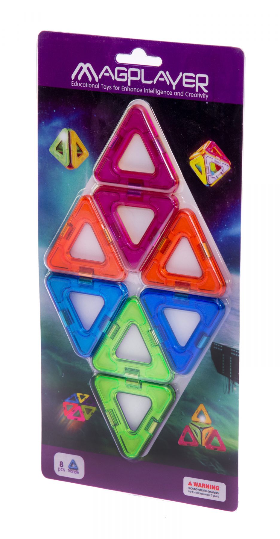 MagPlayer - магнітний конструктор, для розвитку творчості, мислення і моторики рук. Набір з восьми магнітних трикутників різних кольорів чудово доповнить вже готові конструктори і зможе внести в дитячу гру трохи різноманітності.