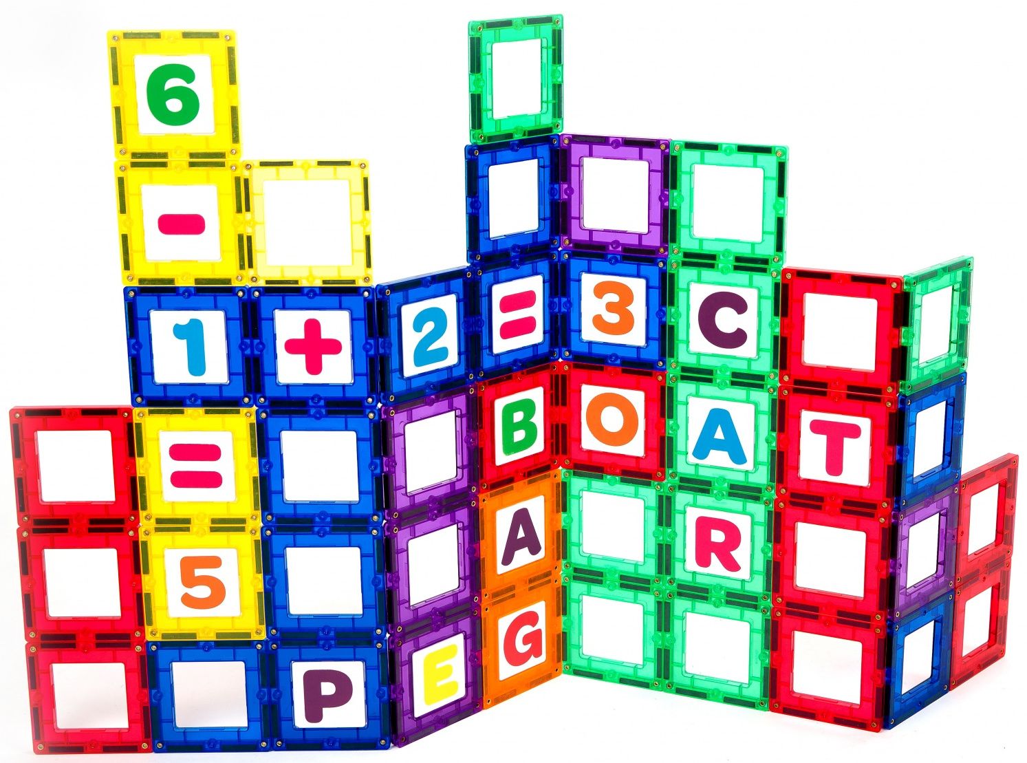 Відкривай, досліджуй та уявляй – слоган бренду MagPlayer, що говорить про велику розвиваючу роль магнітного конструктора для малюків. В набір входить 40 деталей-рамок із якісного напівпрозорого пластика, який неодмінно вразить дітей своєю яскравістю кольорів. Також тут ви знайдете 40 двосторонніх квадратиків з англійською абеткою, цифрами та основними математичними знаками. Двосторонні деталі легко та міцно вставляються у магнітні рамки. За допомогою цього набору дитина зможе будувати кубики з літерами, цифрами або знаками на його гранях. Конструктор сприяє розвитку логічного мислення, моторики рук, вчить основам математики, англійській абетці.