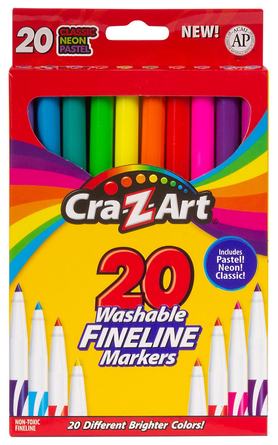 Набір легкозмивних маркерів Cra-Z-Art 20шт - це набір із 20 тонких змивних маркерів, що ідеально підходить для створення деталізованих малюнків, розфарбовування і каліграфії. Завдяки тонкому наконечнику, маркери дають змогу промальовувати акуратні лінії та працювати з дрібними елементами. Змивна формула забезпечує легке видалення чорнила зі шкіри, одягу та інших поверхонь, що робить їх зручними та безпечними для дітей. Насичені кольори надихають на творчість, а компактне паковання дає змогу зберігати маркери в порядку та брати їх із собою куди завгодно.