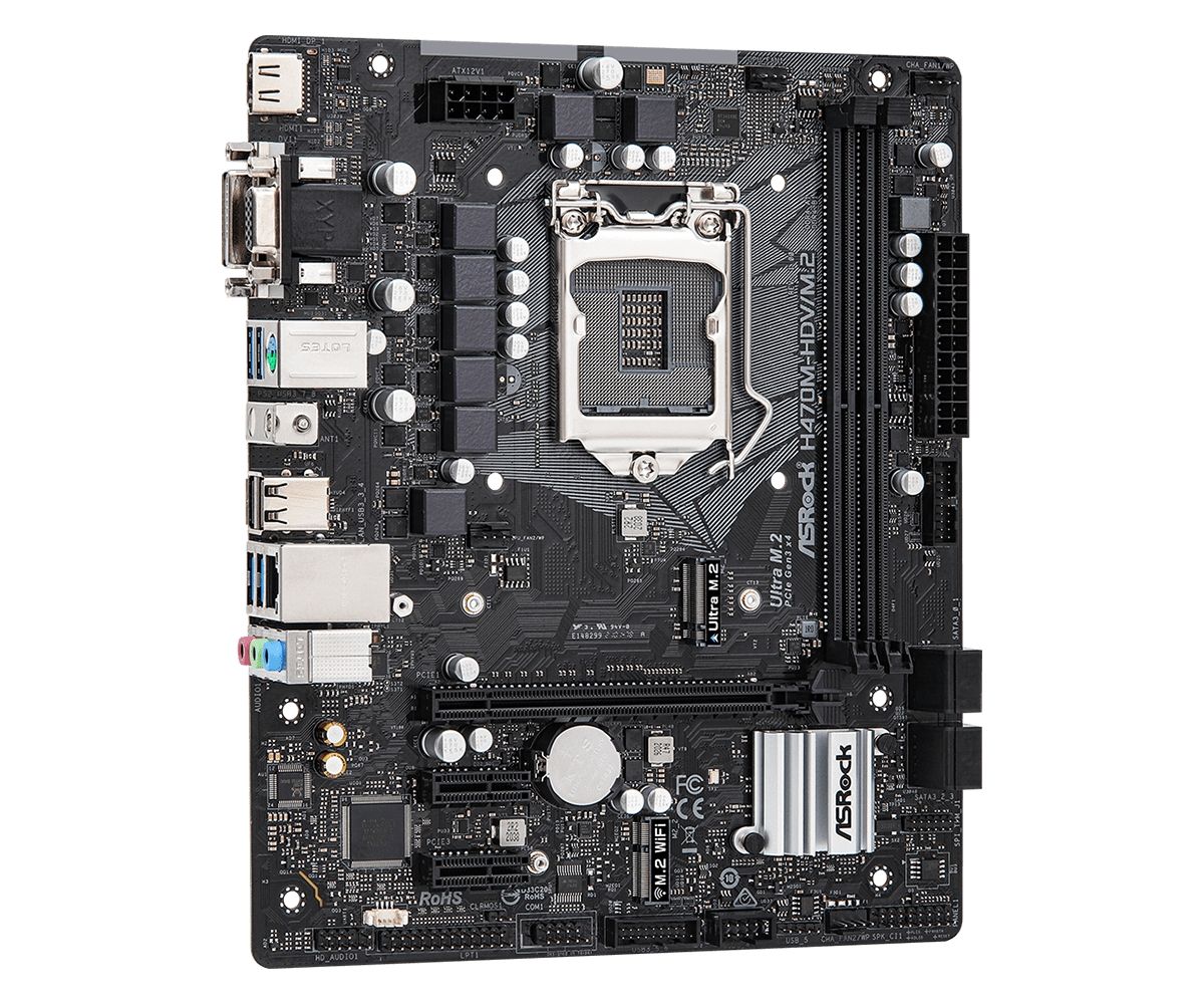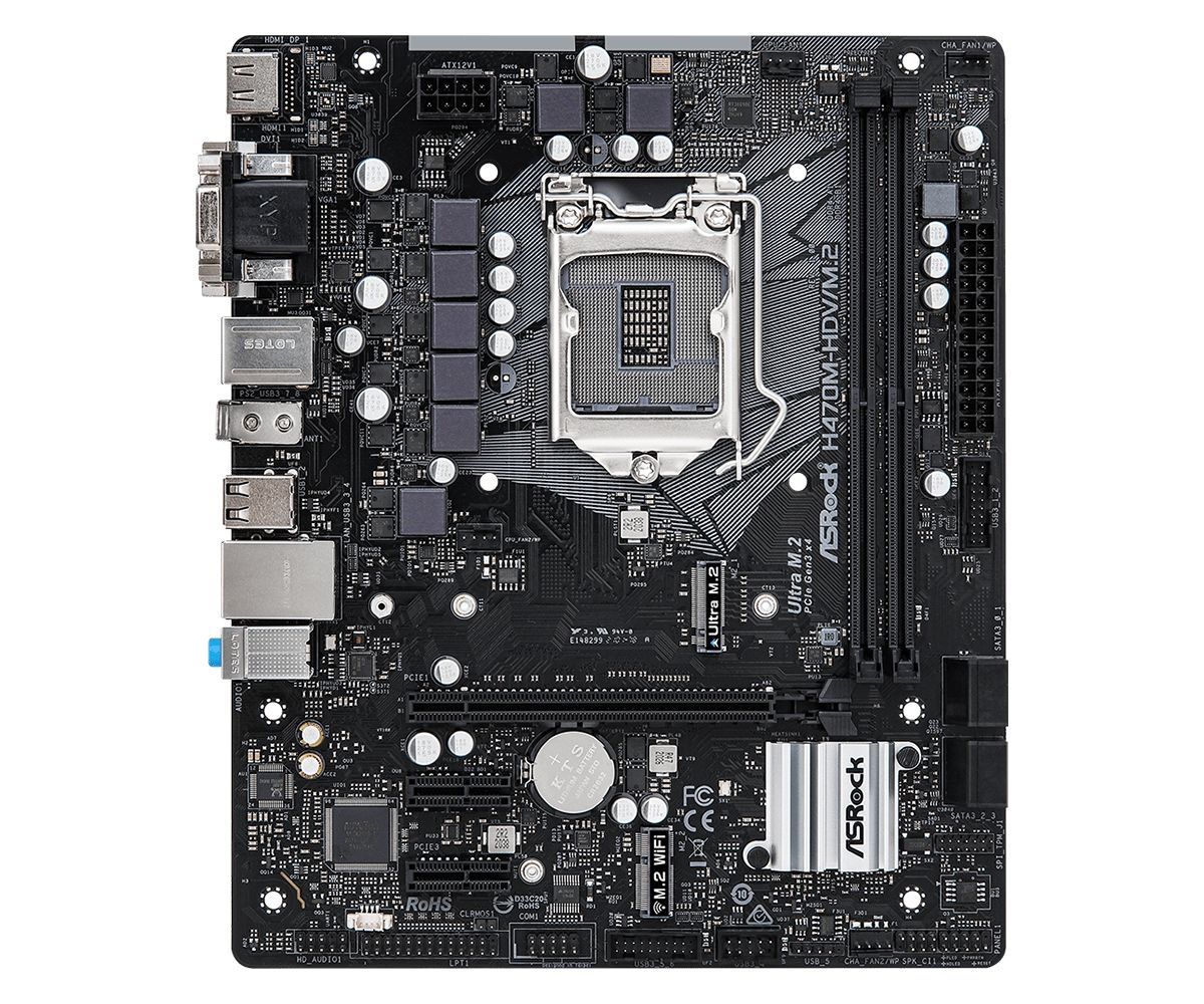 Материнська плата H470M-HDV/M.2 підтримує процесори Intel Core 10-го покоління (Socket 1200) і оперативну пам'ять DDR4 2933 МГц, має надійні компоненти і абсолютно стабільну подачу живлення на CPU. Мережевий модуль Intel® LAN забезпечує кращу пропускну здатність, низьке завантаження CPU, підвищену стабільність та виводить роботу в мережі на якісно новий рівень! Інтерфейс PCIe Gen3 x4 Ultra M.2 забезпечує передачу даних на швидкості до 32Gb/s. Крім того, він підтримує модулі SATA3 6Gb/s M.2 та сумісний з комплектом ASRock U.2 Kit для встановлення супершвидких накопичувачів U.2 PCIe Gen3 x4 SSD.