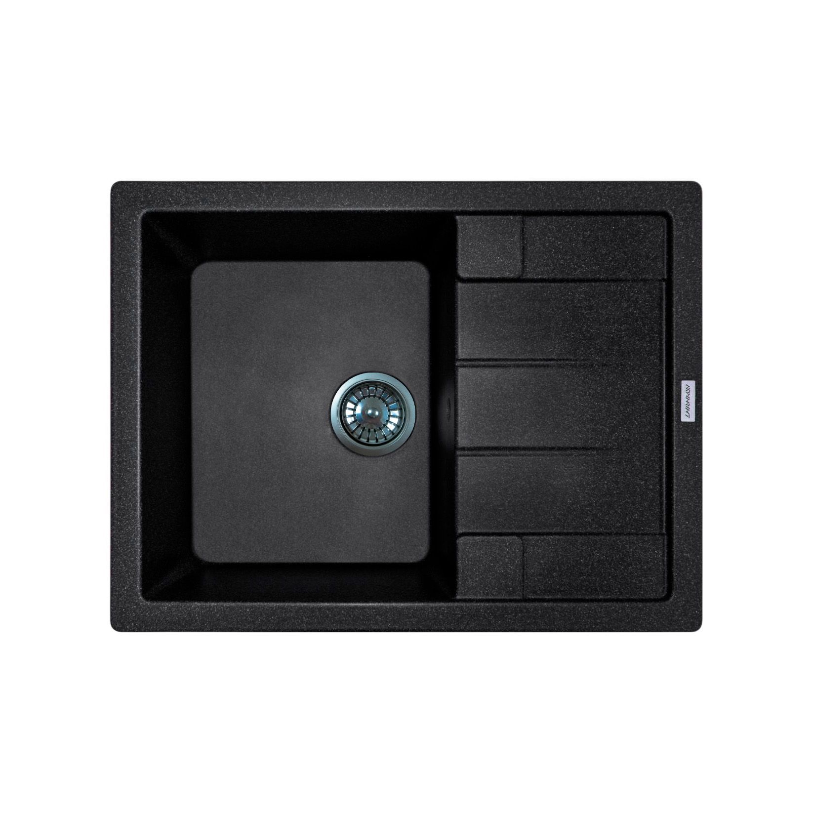 Мийка кухонна Adamant Anila, штучний камінь, прямокут., з крилом, 645х495х200мм, чаша - 1, врізна, чорний