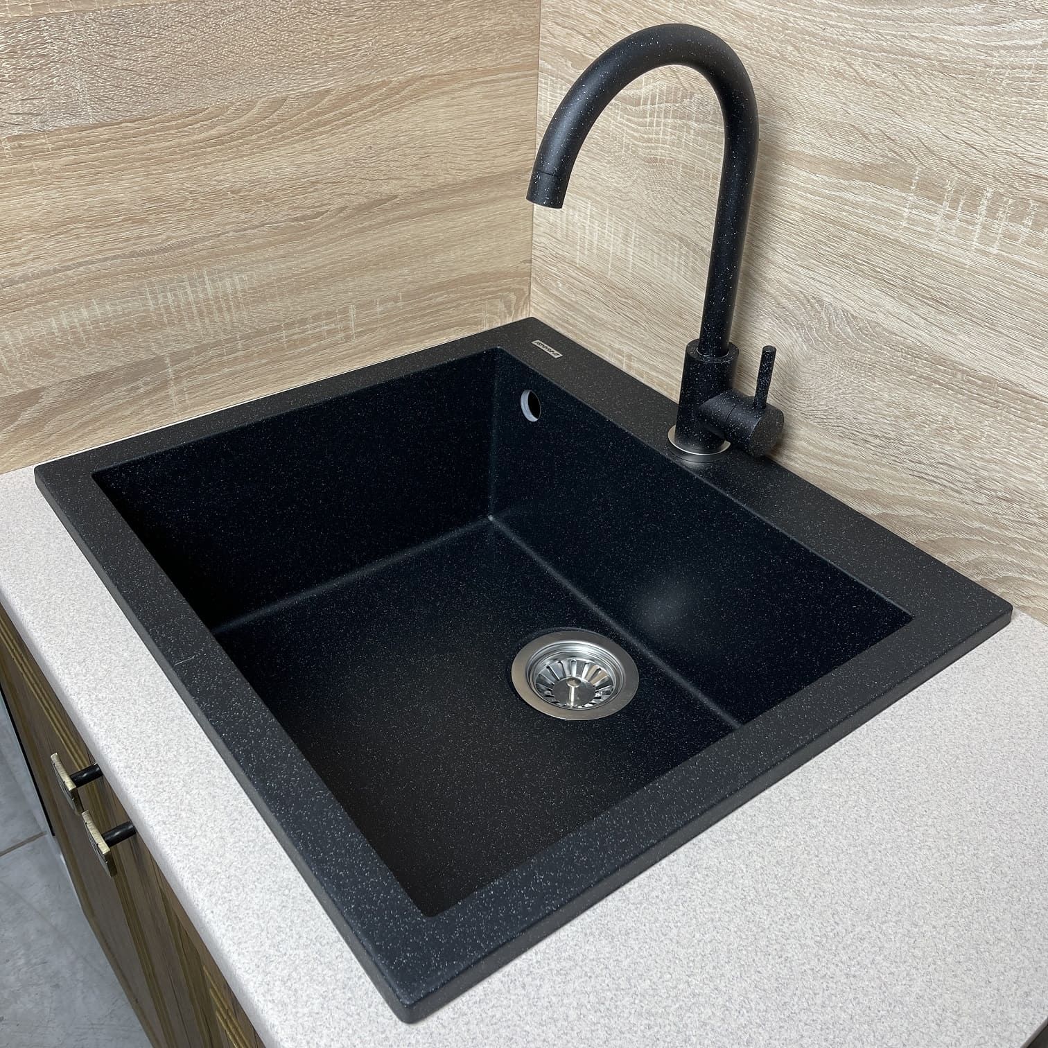 Мийка кухонна Adamant Univer, штучний камінь, квадрат, без крила, 560х500х200мм, чаша - 1, врізна, чорний