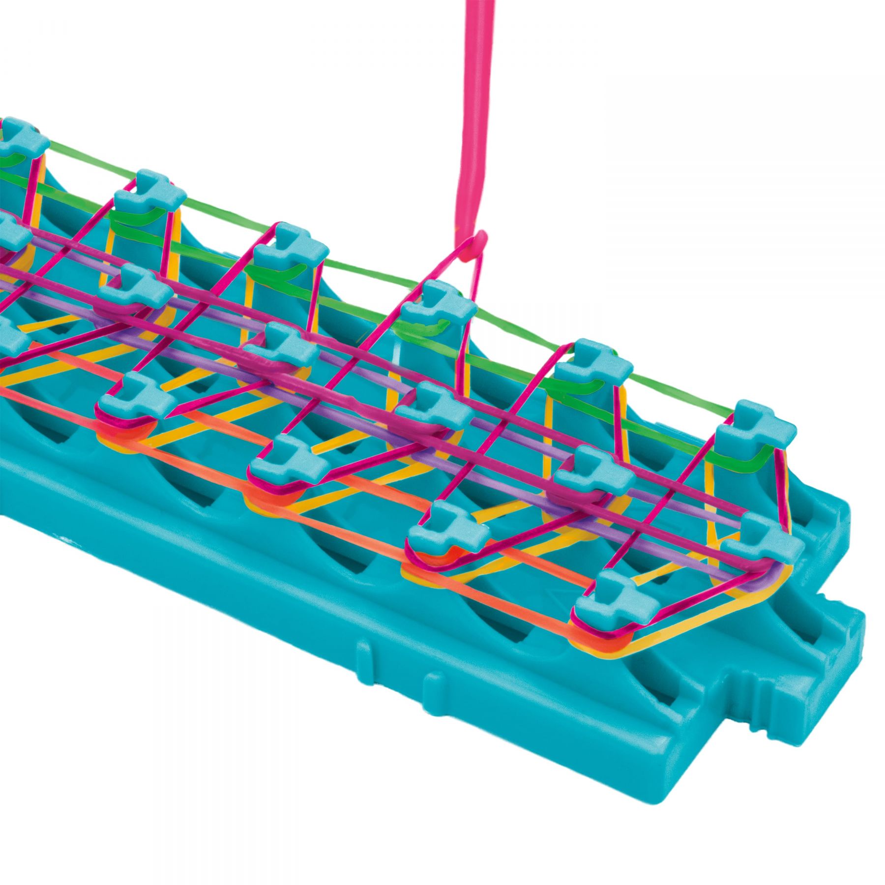Комплектація:інструкція, 1 станок для плетіння, 1 гачок для плетіння, 800+ різнокольорових резинок (без латексу), 12 підвісок (русалка та єдиноріг), 25 з’єднувальних S-кліпів, з’єднувальні кліпси (25–30 шт. залежно від комплектації), лист об’ємних наклейок