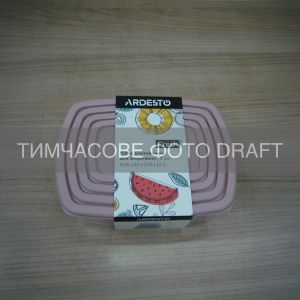 Набір контейнерів для зберігання харчових продуктів ARDESTO Fresh 0.25/0.5/0.75/1.2л, пластик, прямокутна, рожевий