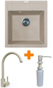 Набір кухонна Adamant Brick, штучний камінь, квадрат, без крила, 460x515x200мм, чаша - 1, врізна, Avena + змішувач та дозатор