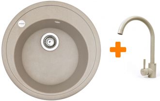 Набір кухонна Adamant Sun, штучний камінь, кругла, без крила, 510x200мм, чаша - 1, врізна, Avena + змішувач