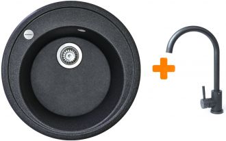 Набір кухонна Adamant Sun, штучний камінь, кругла, без крила, 510x200мм, чаша - 1, врізна, графіт + змішувач