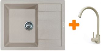 Набір кухонний Adamant Anila, штучний камінь, прямокут., з крилом, 645х495х200мм, чаша - 1, врізна, Avena + змішувач