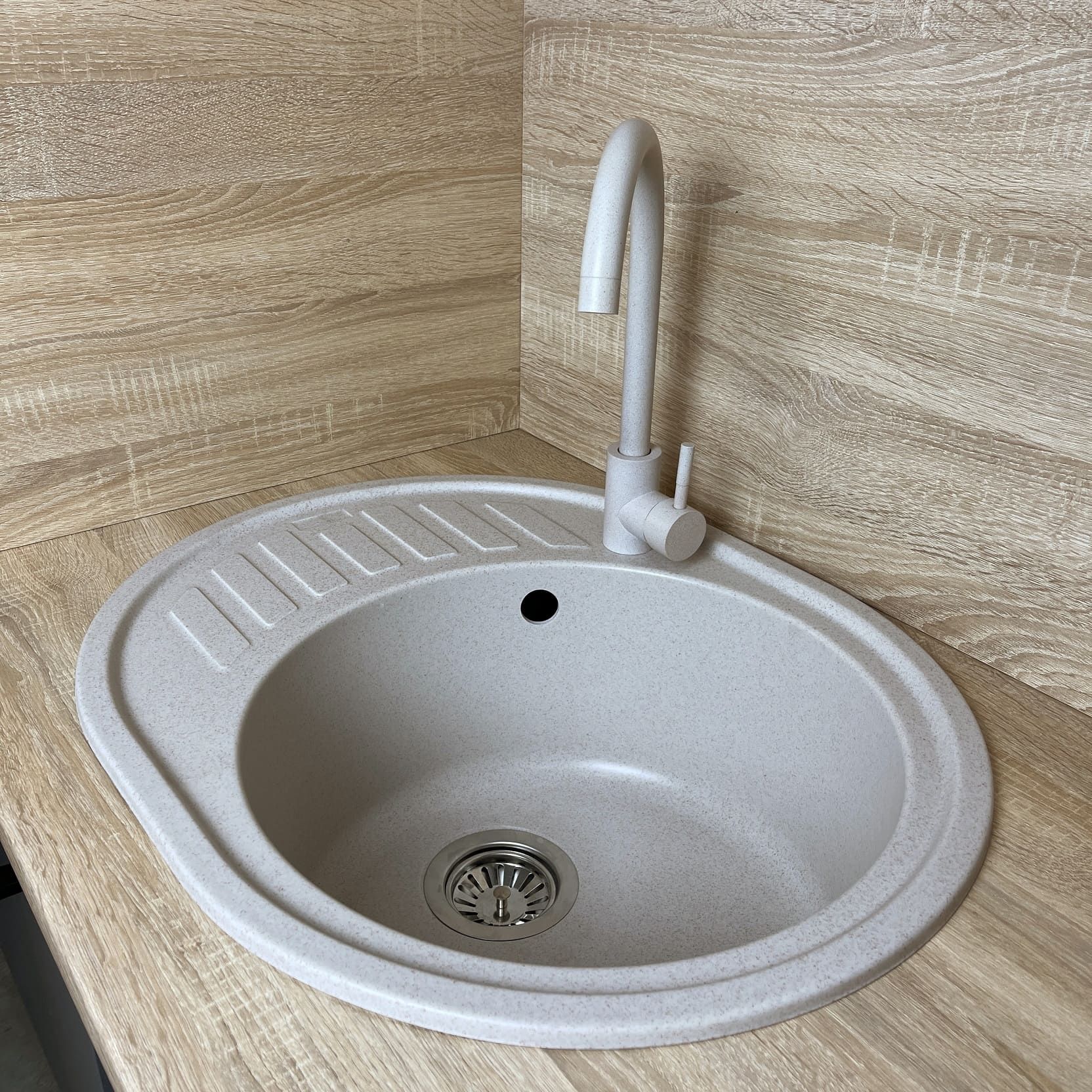 Набір кухонний Adamant Ovum, штучний камінь, овальна, з крилом, 615х495х200мм, чаша - 1, врізна, Avena + змішувач