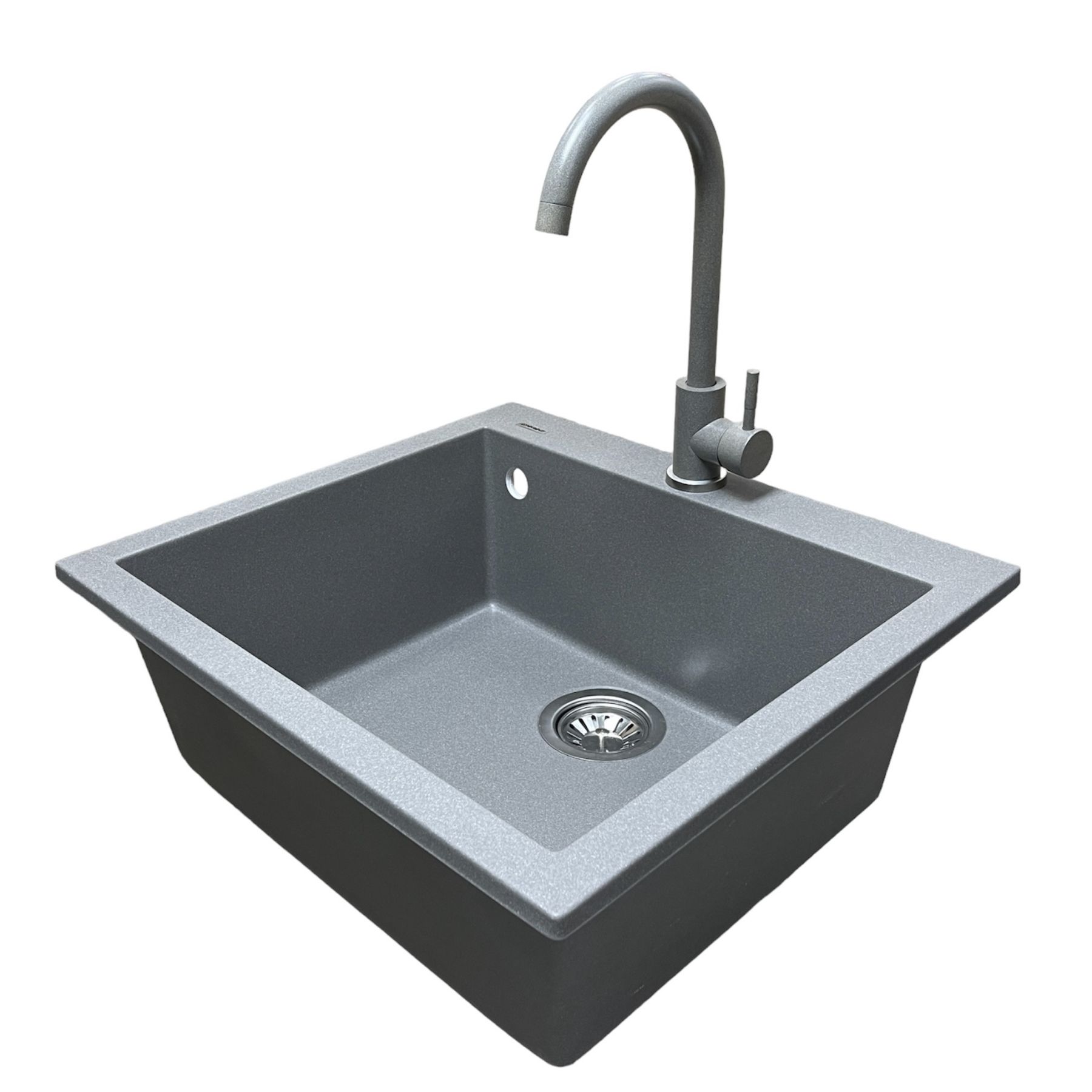 Набір кухонний Adamant Univer, штучний камінь, квадрат, без крила, 560х500х200мм, чаша - 1, врізна, сірий + змішувач та дозатор