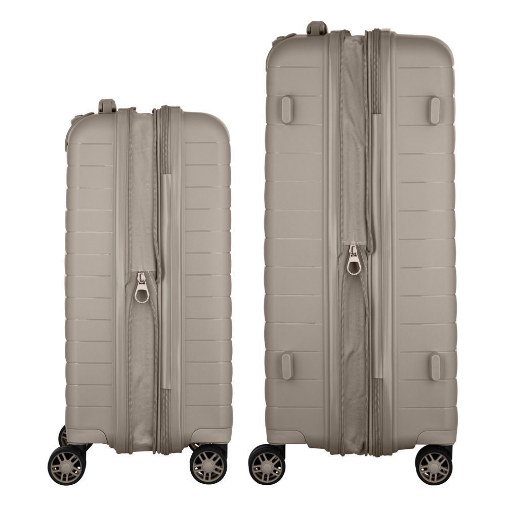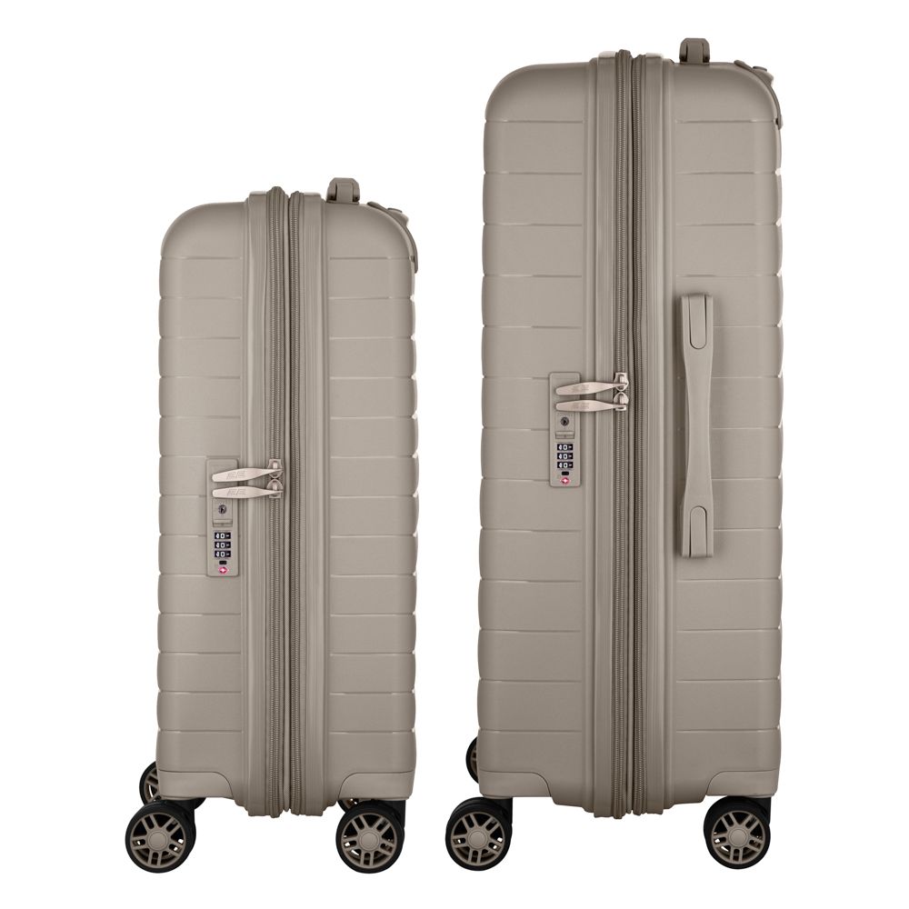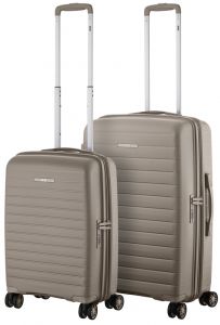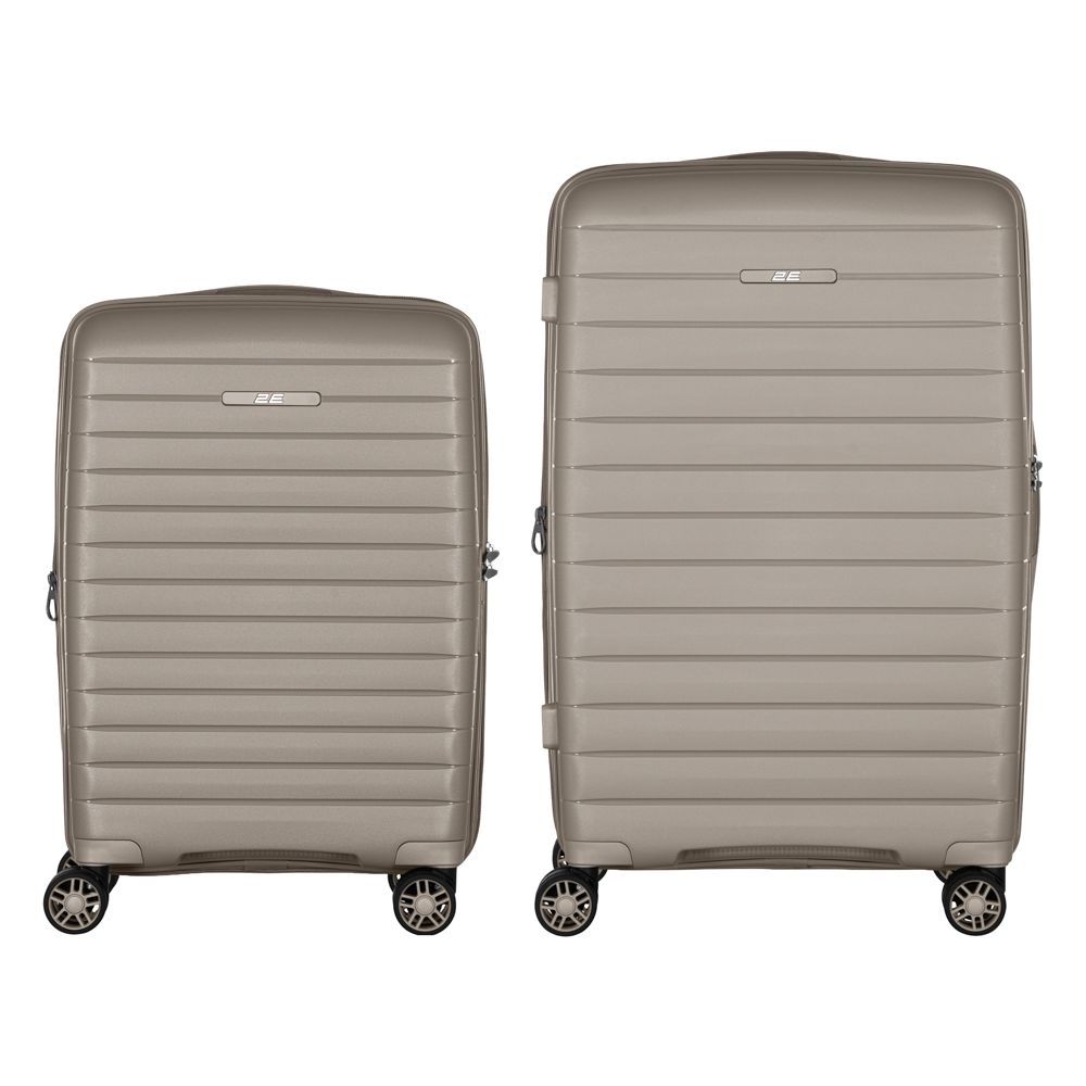 Набір валіз 2E, Aero, поліпропілен, (M+S), TSA, 4 колеса, EXP, сіро-коричневий