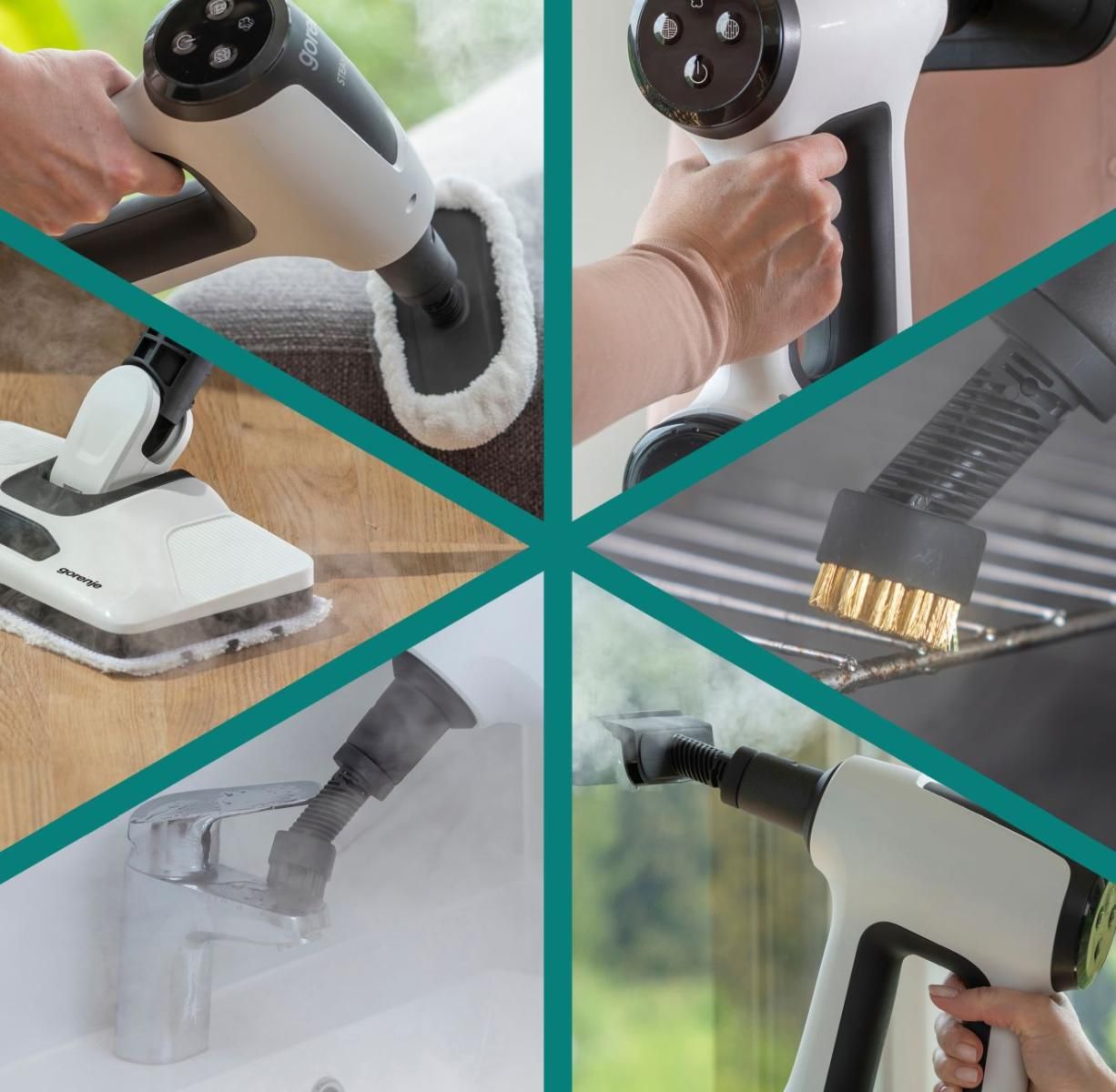 Комплектація:серветка з мікрофібри, насадка для миття вікон, насадка для чищення парою, маленька щітка, насадка для серветки для прибирання