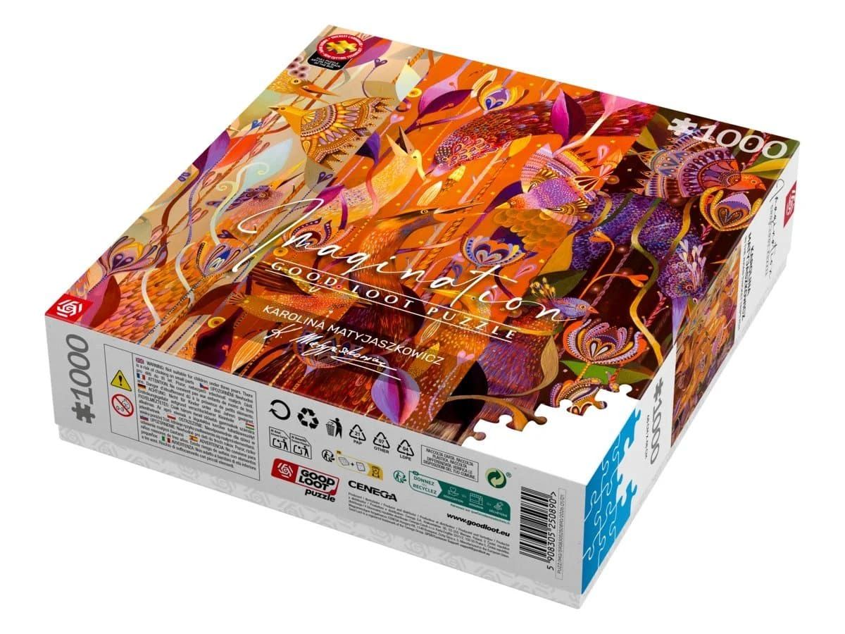 Пазл GoodLoot Imagination: Karolina Matyjaszkowicz In the Avian Thicket Triptych на 1000 елементів відтворює авторську ілюстрацію Karolina Matyjaszkowicz. Зображення поєднує мотиви природи, фольклору та символічні образи у складній композиції. Елементи мають точне прилягання, а поверхня з ефектом полотна зменшує відблиски. Ілюстрація вирізняється насиченістю образів.