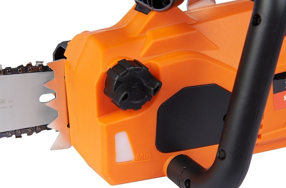 Електрична ланцюгова пила SEQUOIA SEC2416SOL оснащена двигуном потужністю 2,4 кВт та шиною Oregon 40 см з кроком ланцюга 3/8" та товщиною 1,3 мм. Швидкість ланцюга 15 м/с та автоматична система змащення забезпечують стабільний різ деревини середньої твердості. Безключова натяжка ланцюга SDS спрощує регулювання під час роботи. Плавний пуск та ергономічні гумові рукоятки зменшують вібрацію та полегшують тривале використання. Вага 5,3 кг робить інструмент зручним для побутових та напівпрофесійних завдань.