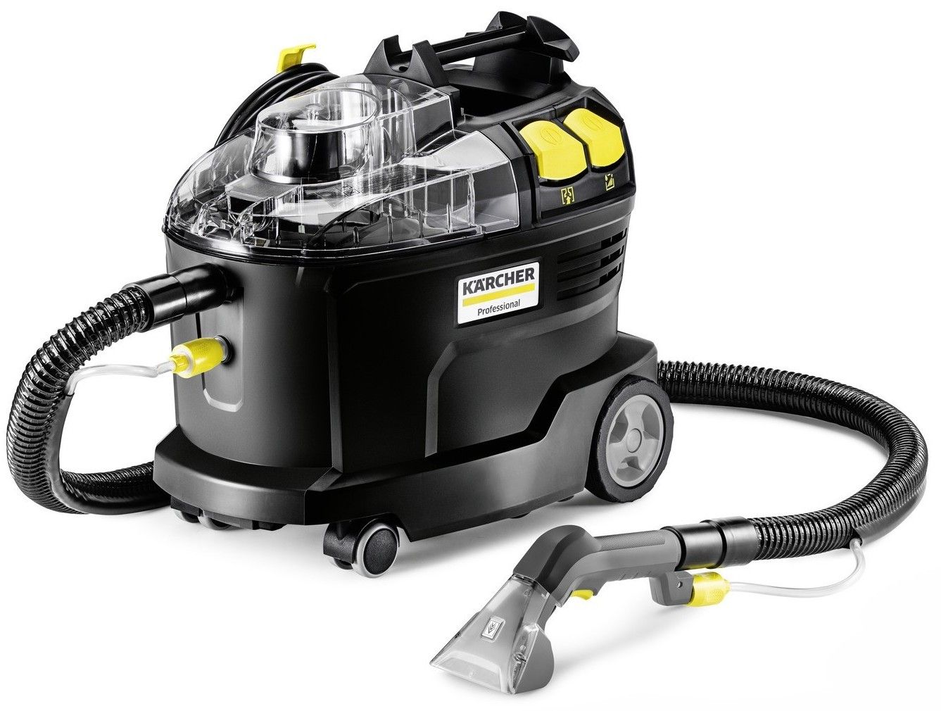 Пилосос професійний Karcher Puzzi 8/1 Go!Further призначений для вологого екстракційного очищення текстильних поверхонь. Модель використовується для догляду за оббивкою, локального видалення плям і очищення салонів транспортних засобів. Потужна всмоктувальна система сприяє швидкому видаленню вологи після обробки. Конструкція поєднує компактні розміри, малу вагу та зручність транспортування.