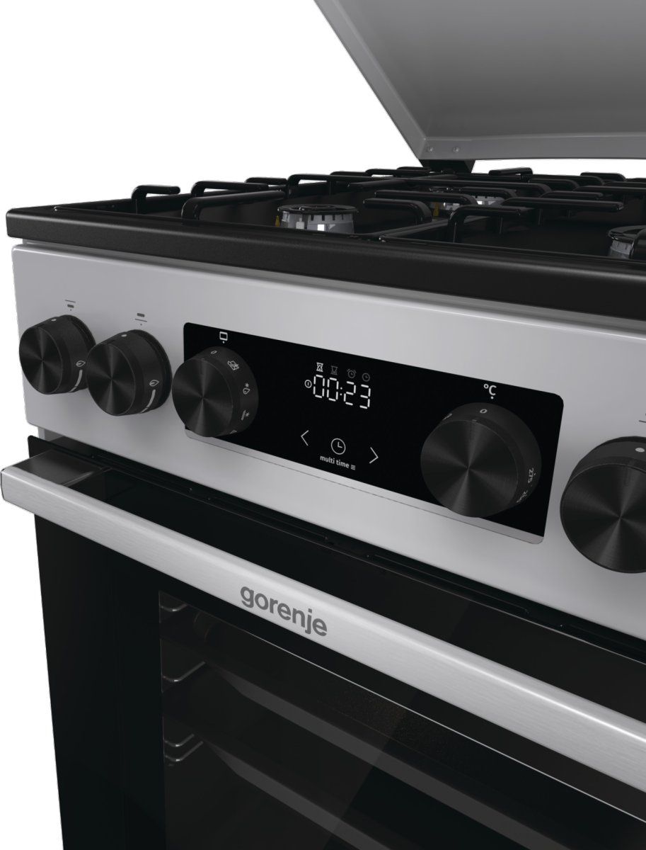 Плита Gorenje комбінована поєднує газову варильну поверхню та електричну духову шафу для щоденного приготування різних страв. Корисний об’єм духовки 70 л дає змогу готувати як повсякденні, так і більш об’ємні порції. Модель підтримує режими для піци, заморожених продуктів, розморожування та швидкого попереднього нагрівання. Чотири газові конфорки дозволяють використовувати посуд різного розміру. Керування реалізоване за допомогою ергономічних перемикачів та електронного програматора IconLed.