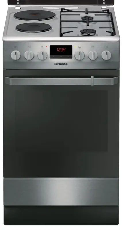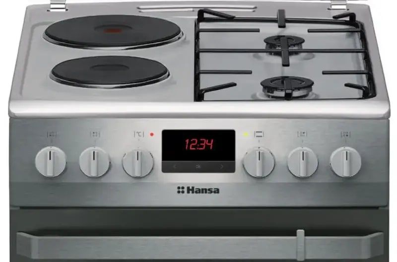 Плита Hansa з комбі. вар. поверхнею, 50х60см, 62л, емаль, газ контр., дисплей, нержавіюча сталь