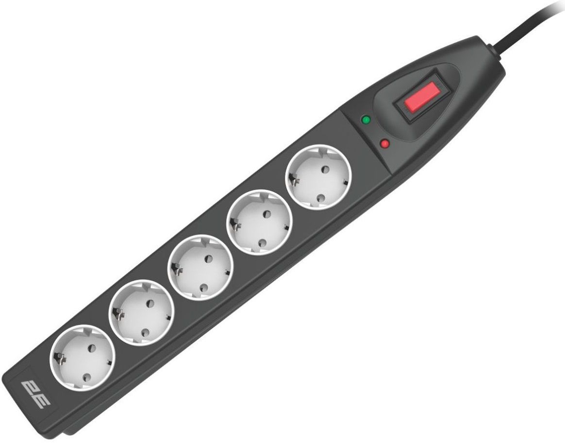 Подовжувач мережевий 2E 5м, 5xТипF, 16A, фільтр, чорний